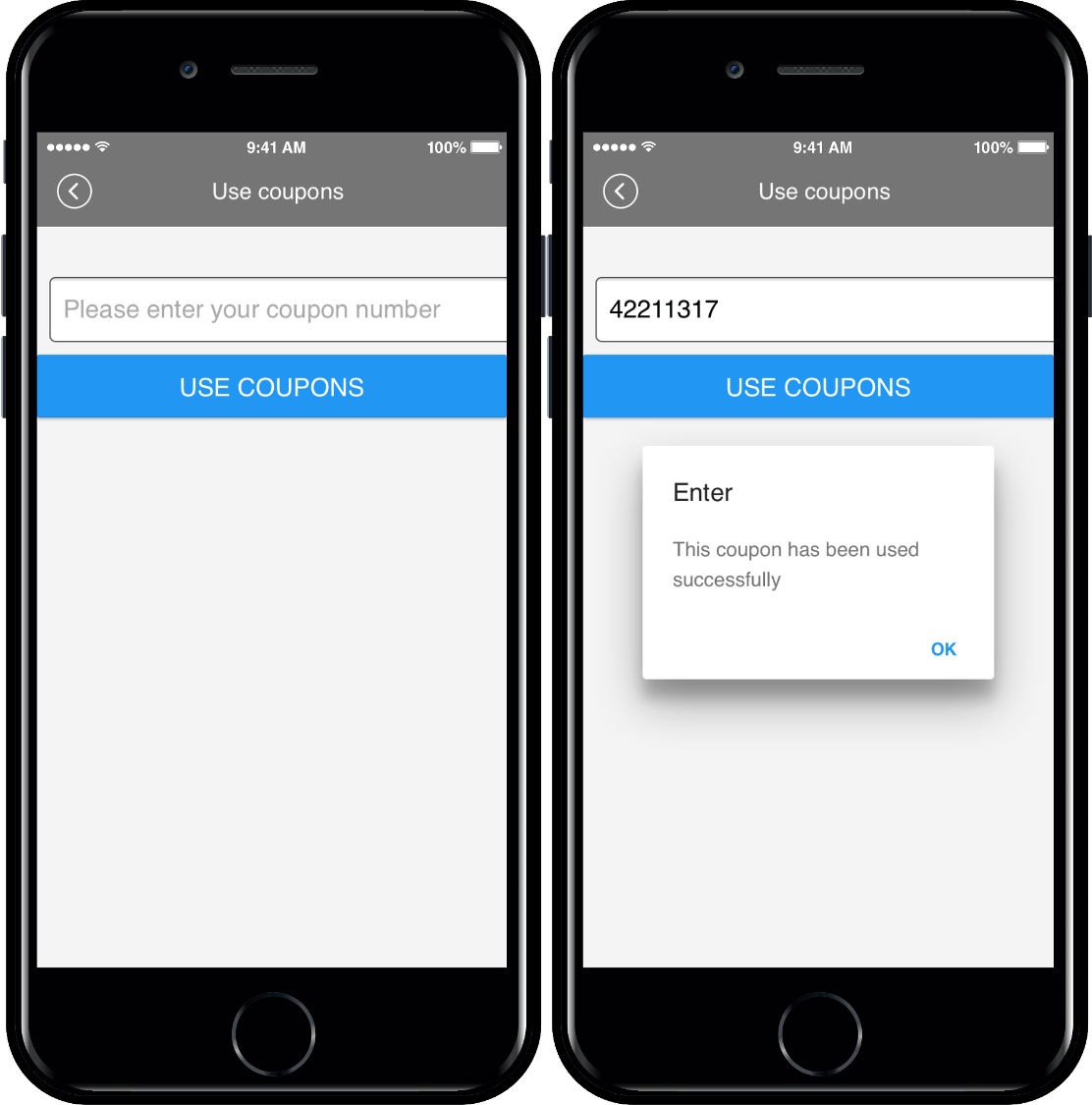 The coupon can be used by entering the coupon number sent to the user in the admin menu.