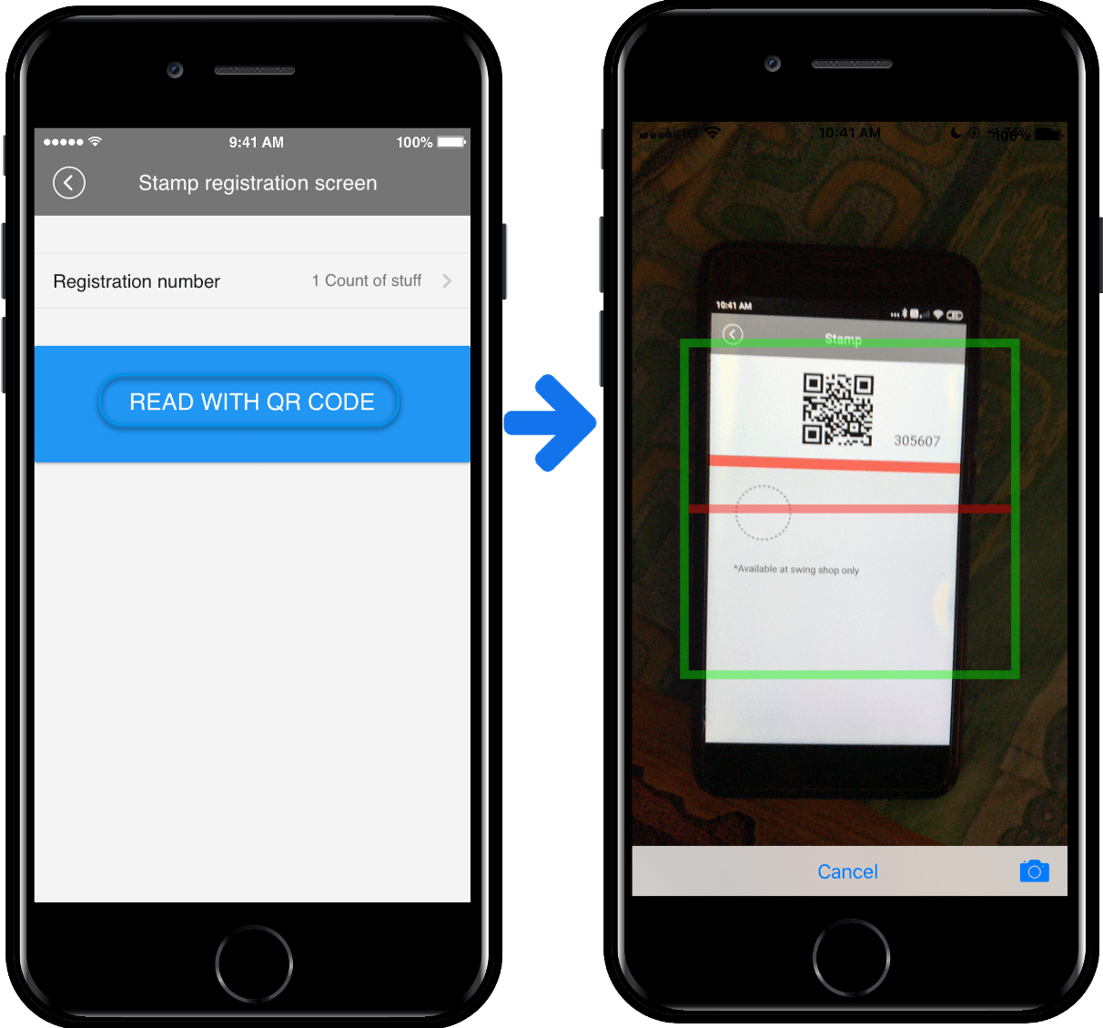 In fact, the user’s stamp is registered by executing QR code on the app administrator menu – Stamp registration screen.