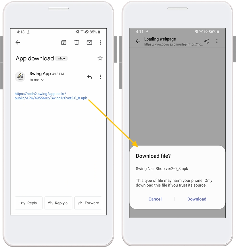 *The app installation link is available in various applications that can share the link or messenger (Kakaotalk) in addition to the above guide.