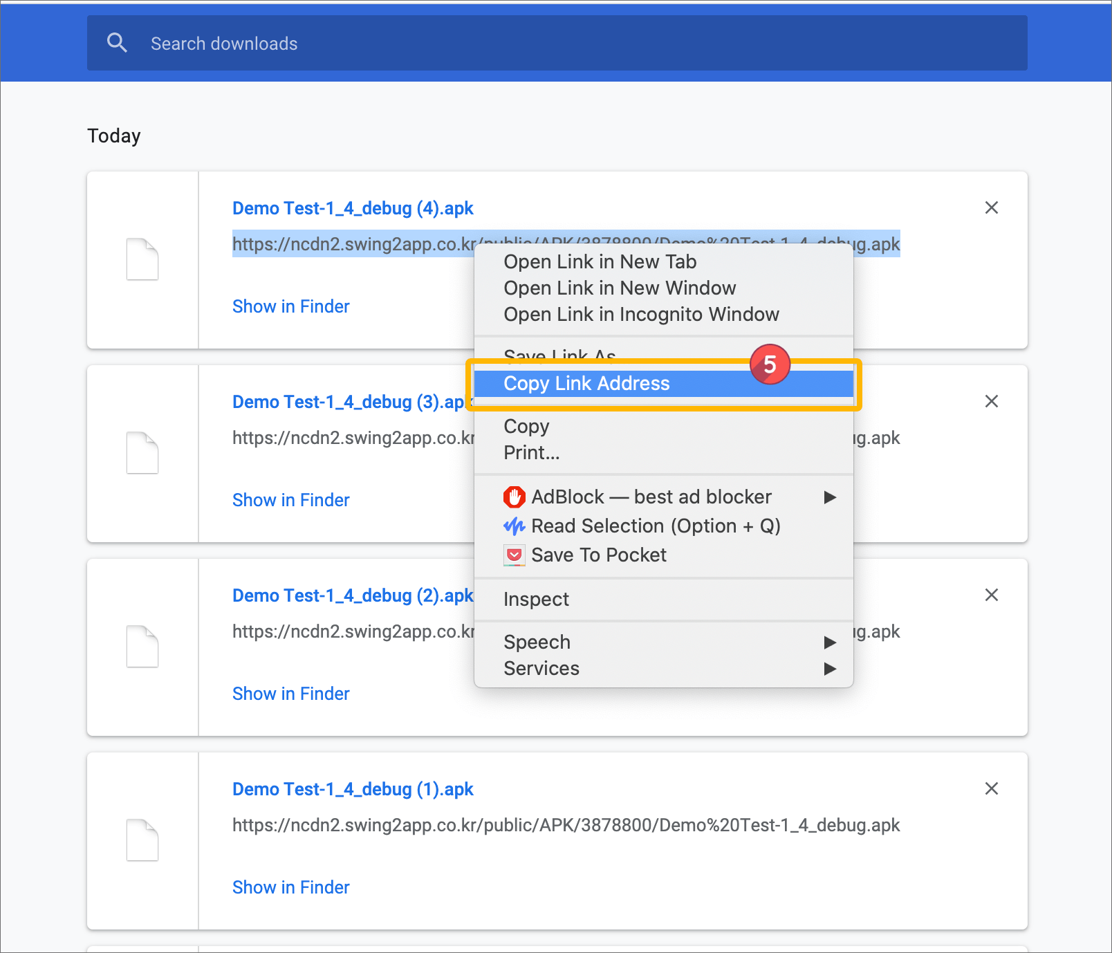 If you click ‘Copy link address’, you can copy the app installation (download) address.