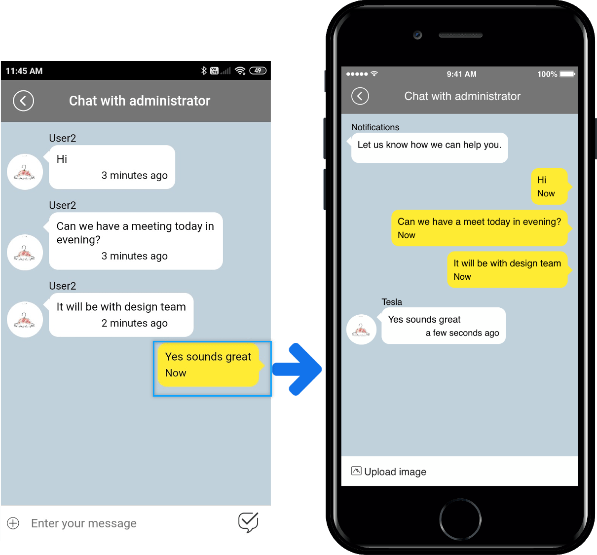 *Administrators too! When a user sends a message, a push notification is sent in real time.