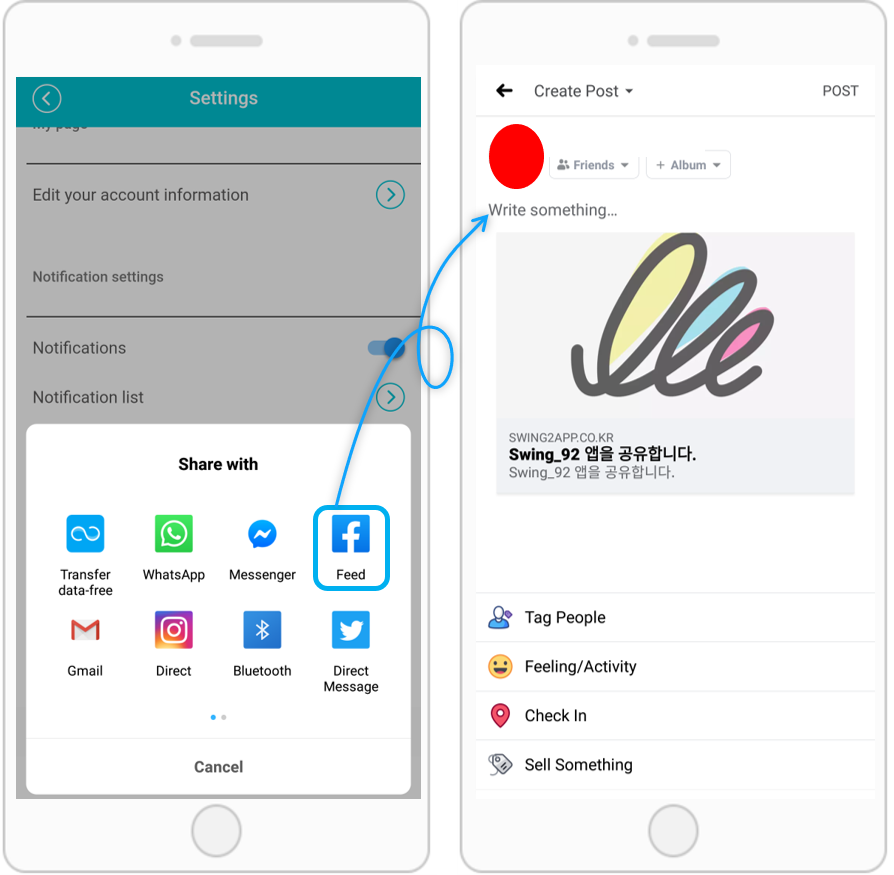 Share to Facebook: Select [To share] within the Facebook app and then select [OK]
