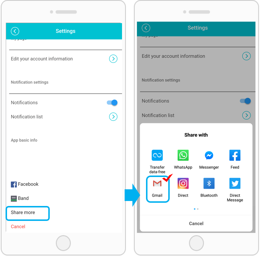 Go to the Gmail app, and the app sharing link will be filled in automatically.