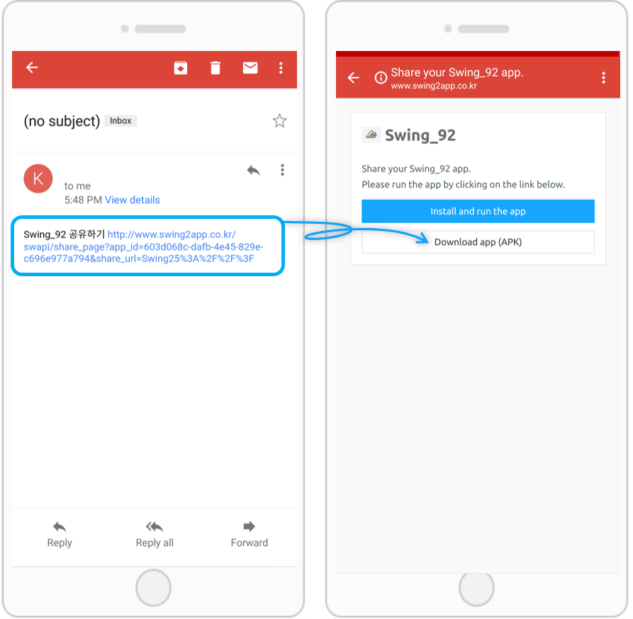 Apps created by Swing2app can be shared with other users without having to be released to the Store for Android, such as the Play Store.