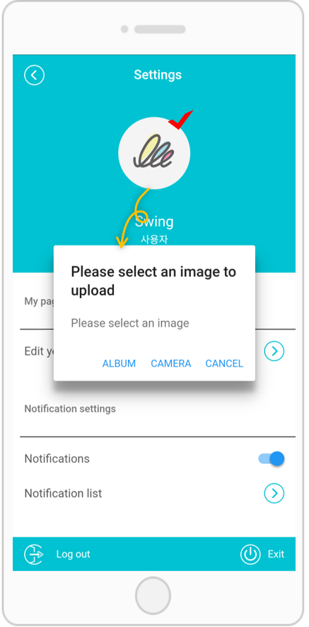How to register and change your profile image again! *Profile image registration method: Profile image registration is possible upon registration. *Profile image change method: Change image in ‘Setting’ menu, change image in ‘Settings-Edit member’. Images can be uploaded directly from the album in the phone or by taking a picture directly with the camera. Changing the profile picture is only available to registered user accounts. (Non-members cannot access it)