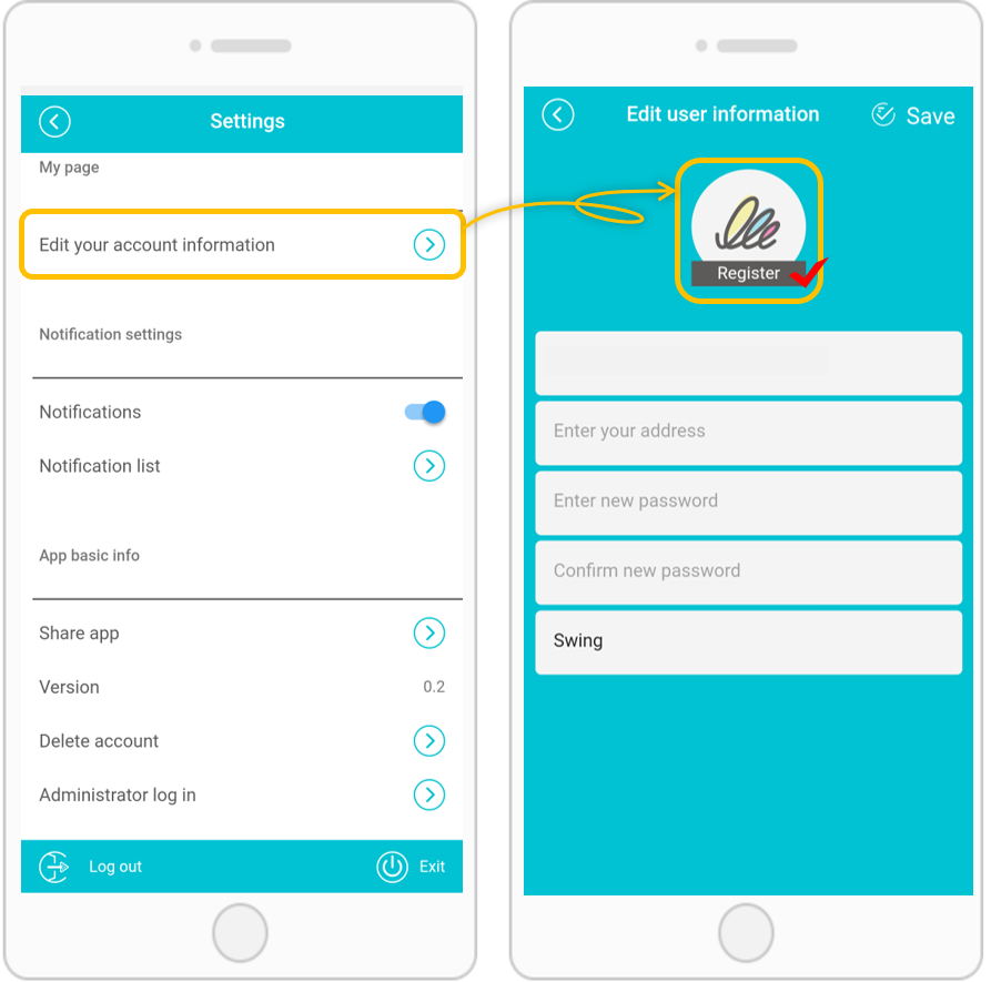Registering and changing your app profile picture