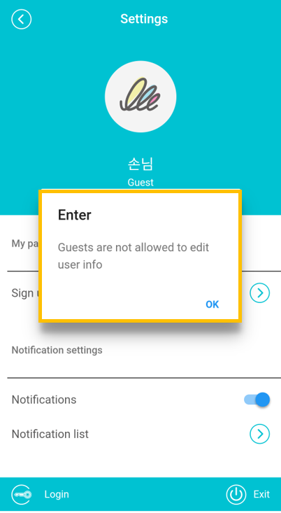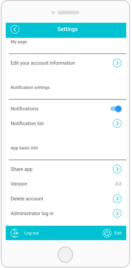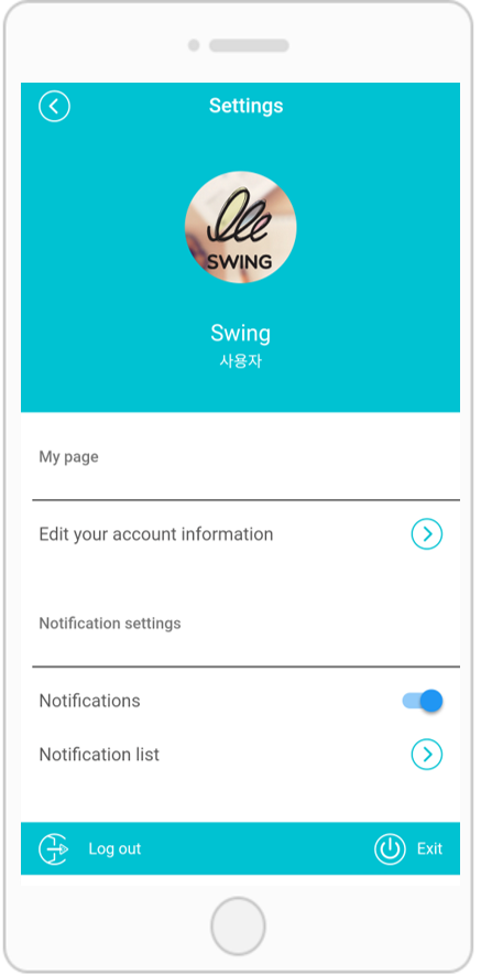 You can edit the member information, push notifications (on / off), check the notification list, unsubscribe, share the app, check the version.