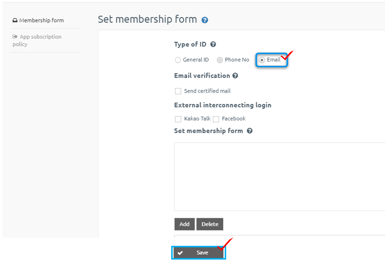 On the Swing2App Management page, go to Services → Subscription Settings → Membership Form.