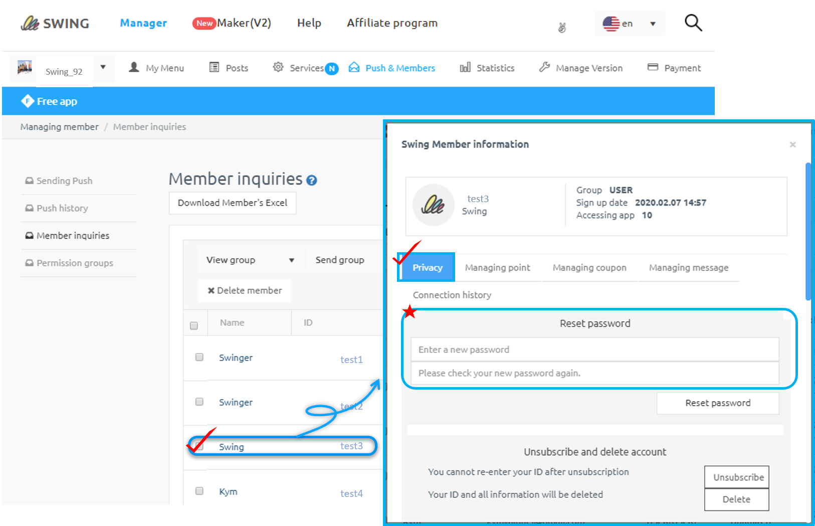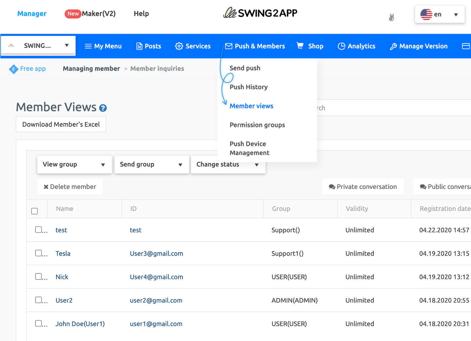 Please go to the Push & Members → Member views menu on the swing2app, Manager page.
