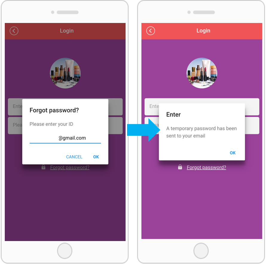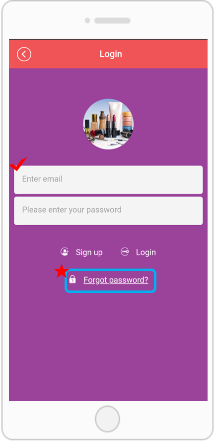 If you enter the [Login] menu after running the app, there will be a [Forgot Password] button under the Email and Password input items.