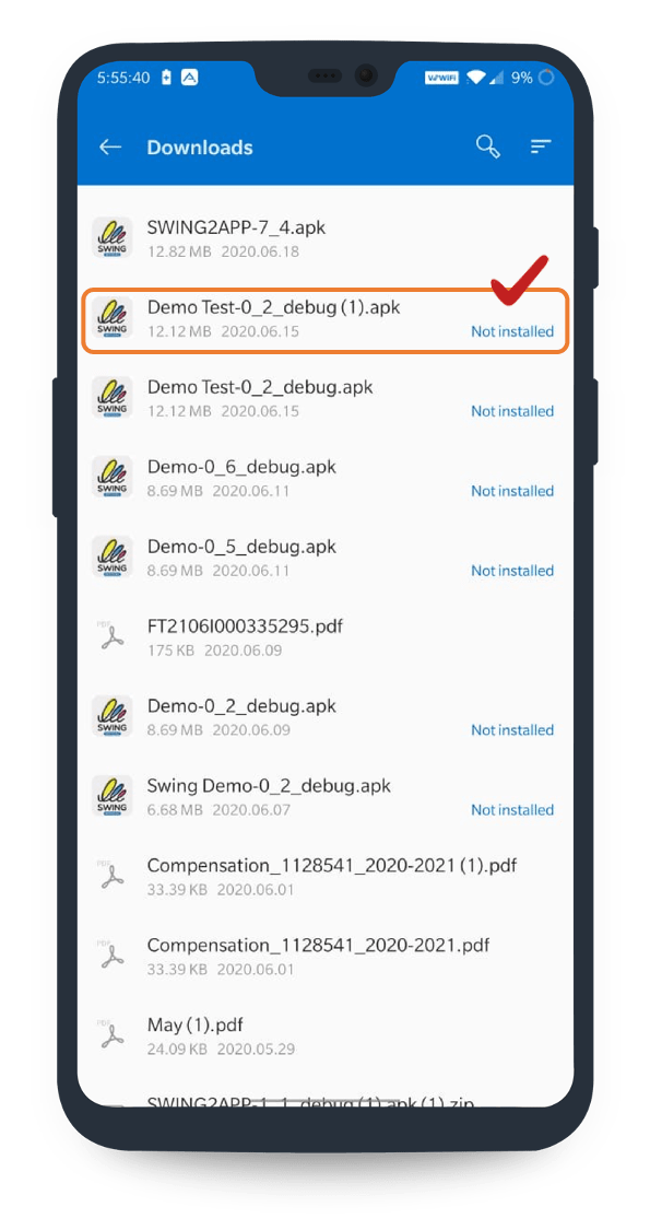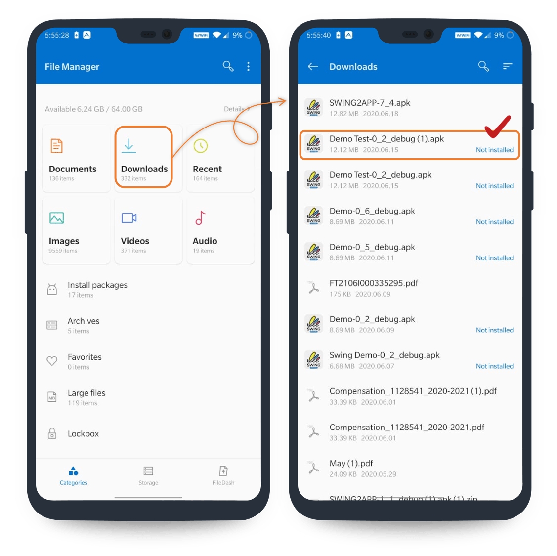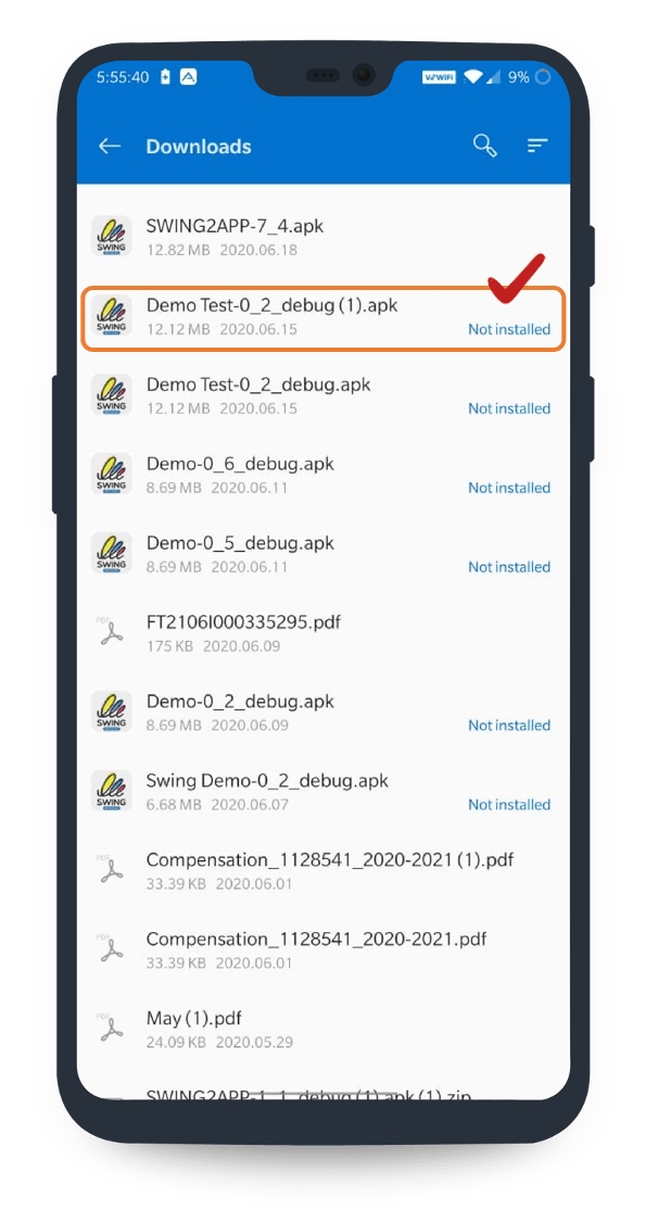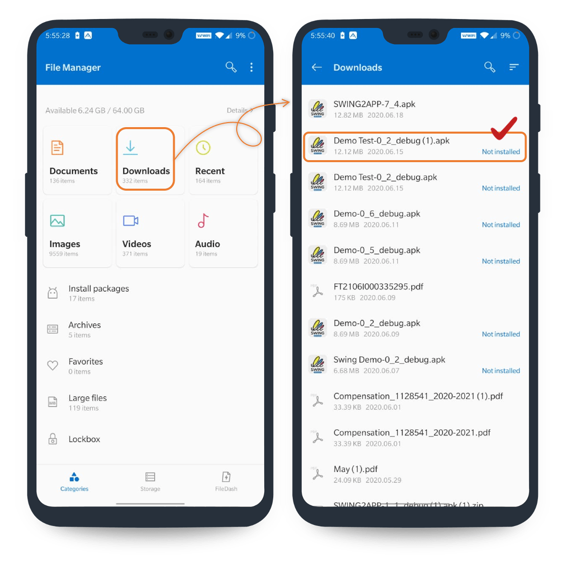 Therefore, open the file management app to find the APK file produced in Swing2App and you can install the app manually.