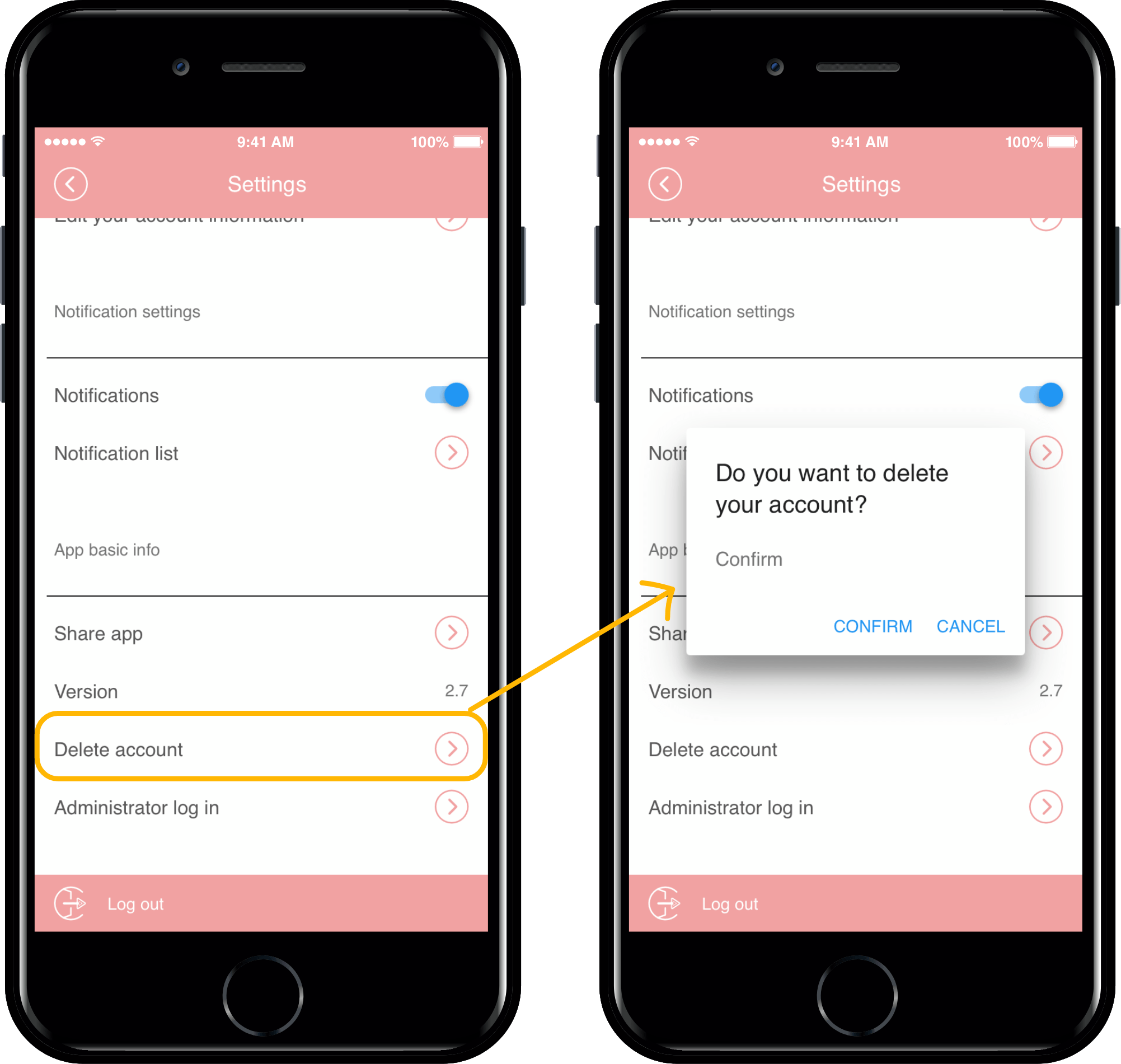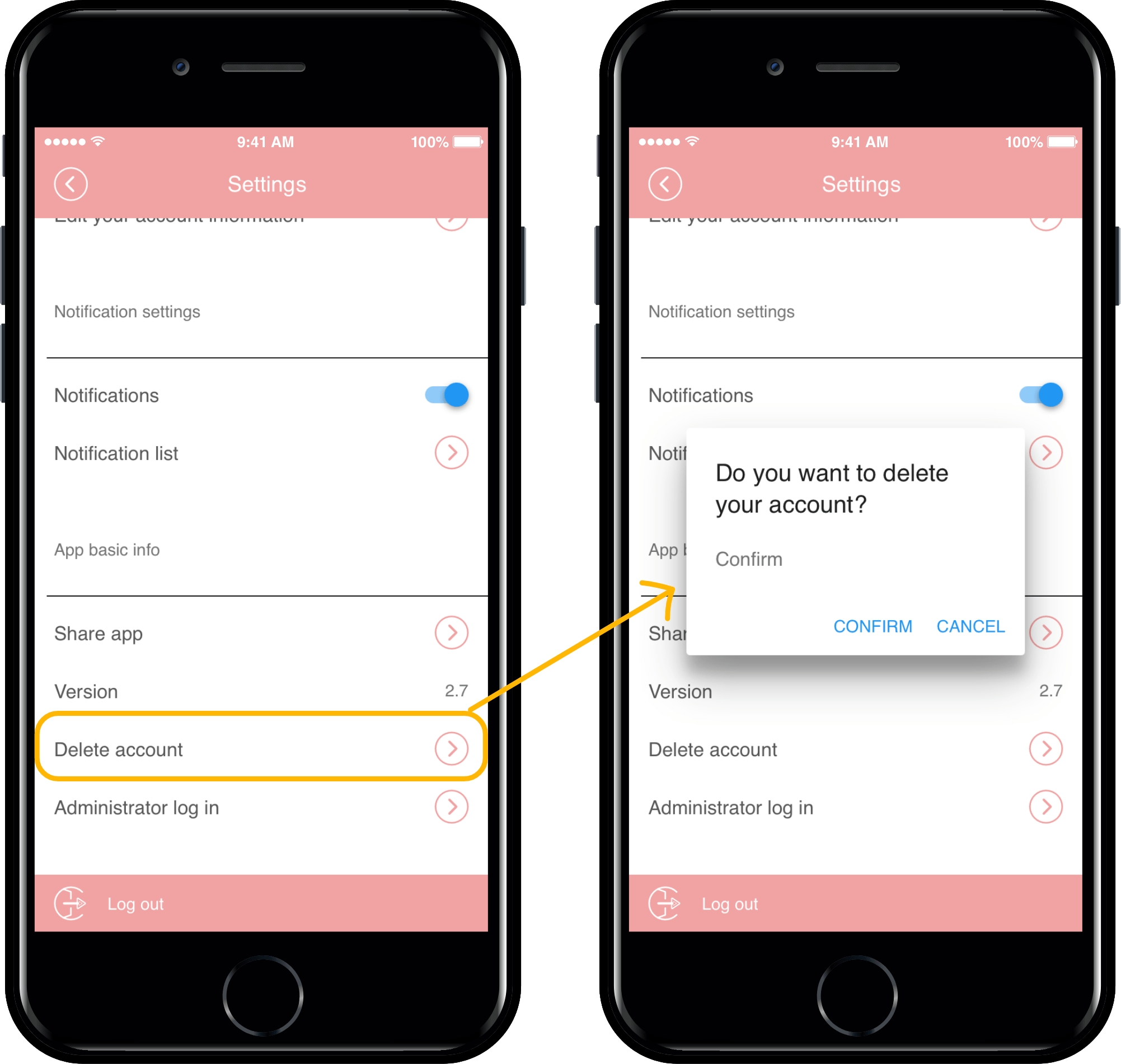 For membership withdrawal, there is a’Membership withdrawal’ menu in the app settings.
