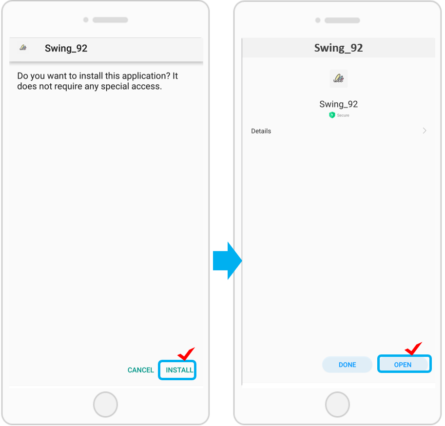 The downloaded APK is installed, and the app installation is completed.