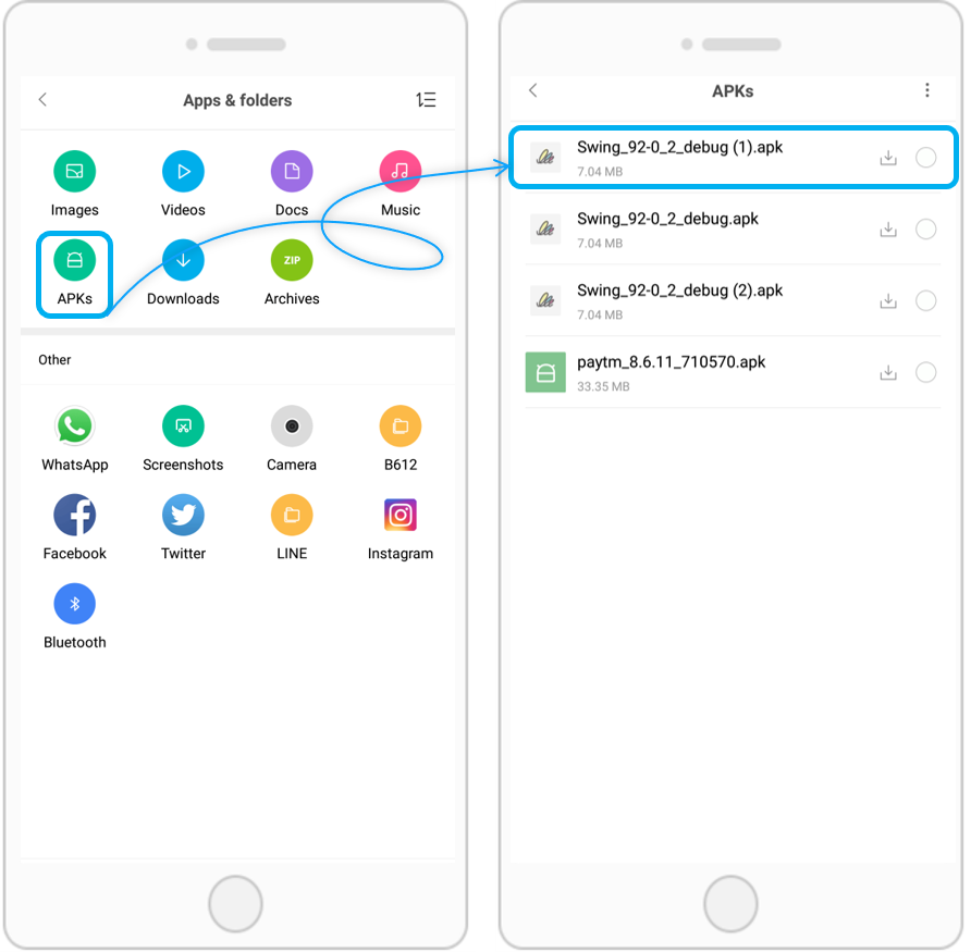 Therefore, open the file management app to find the APK file produced by Swing2App, and you can install the app manually.
