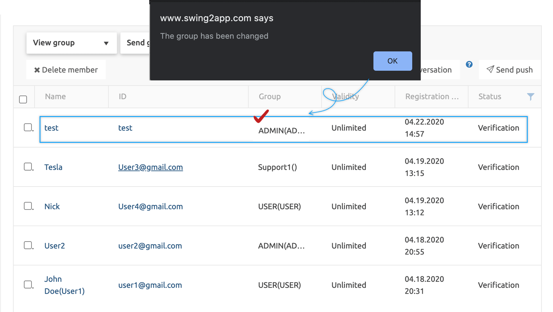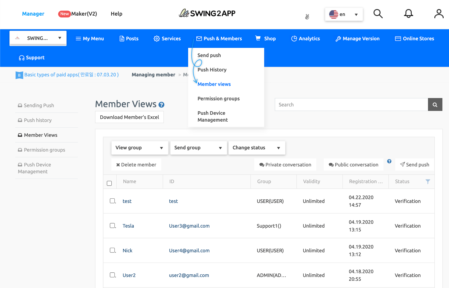 On the member inquiry page, you can check the list of members subscribed to the app.