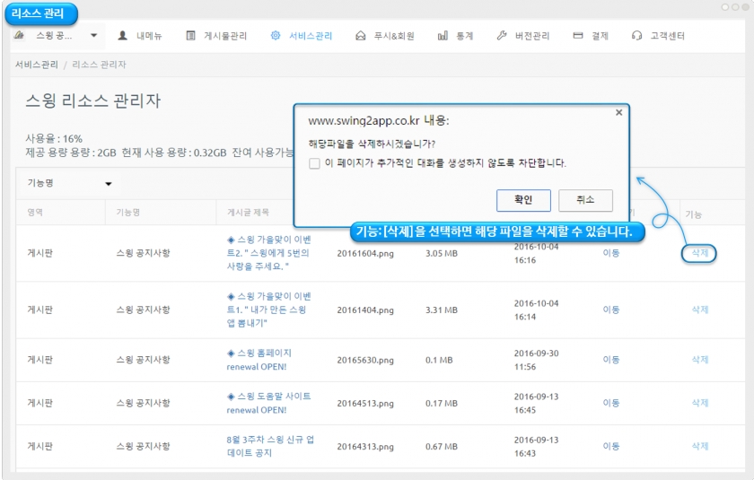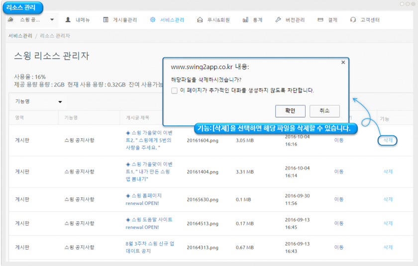 Therefore, if the capacity is exceeded, you can free up capacity by purchasing and applying a separate capacity add-on for as much capacity as you are insufficient, or by deleting the larger posts from the resource management page.
