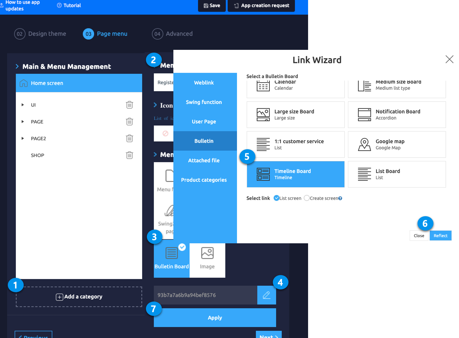 In the app creation page, you need to link the relevant bulletin board to the app to be reflected. Please check how to apply it to the app below.
