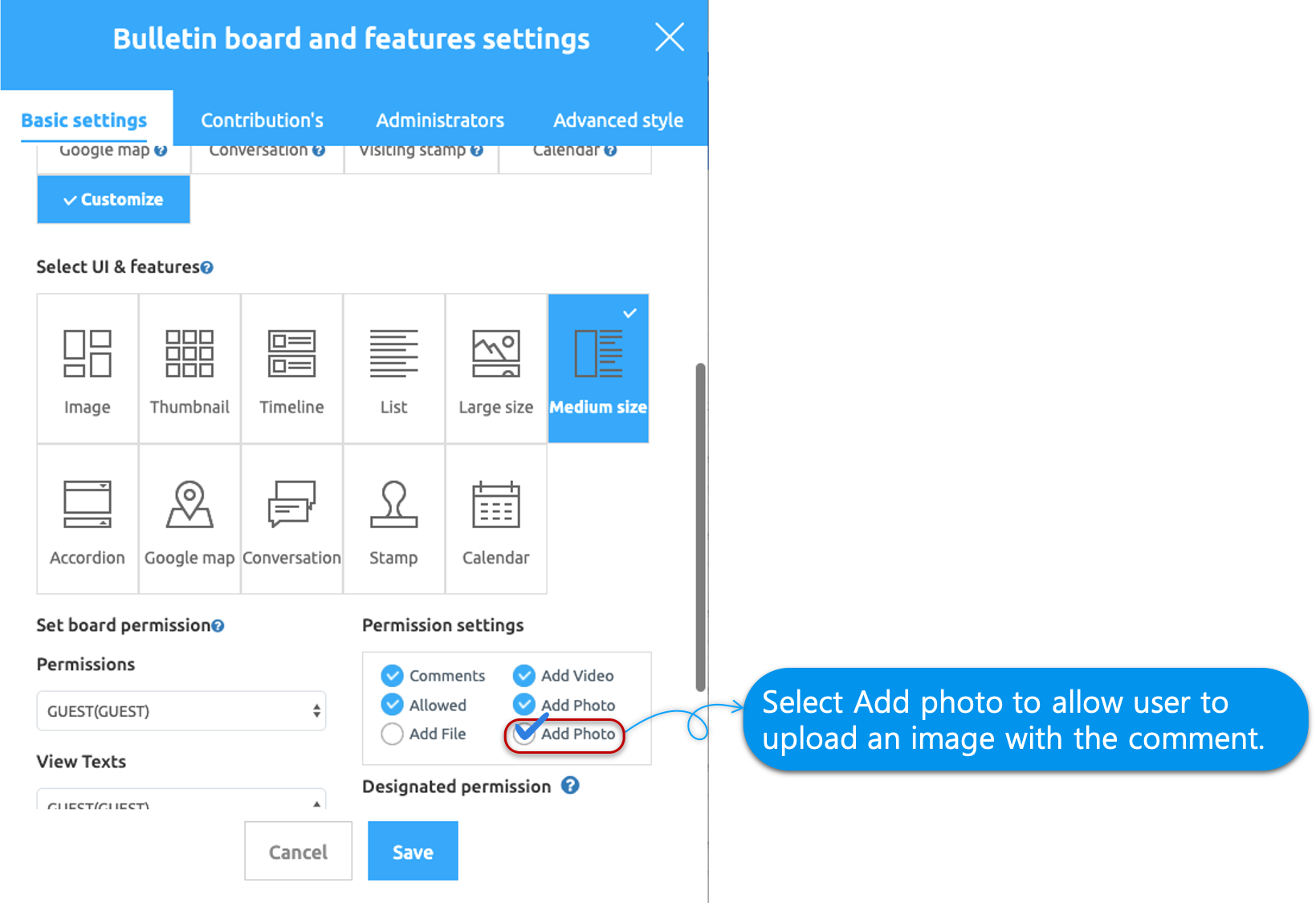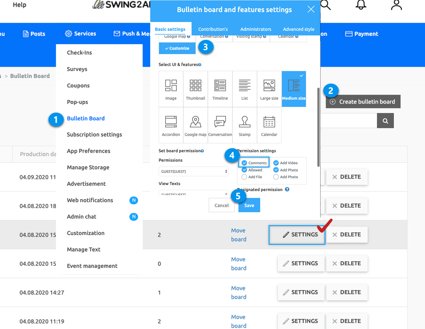 Therefore, if you want to use comments in the bulletin board posts, first, you should enable the Comments in Permission Settings on the bulletin board you have created or newly created.