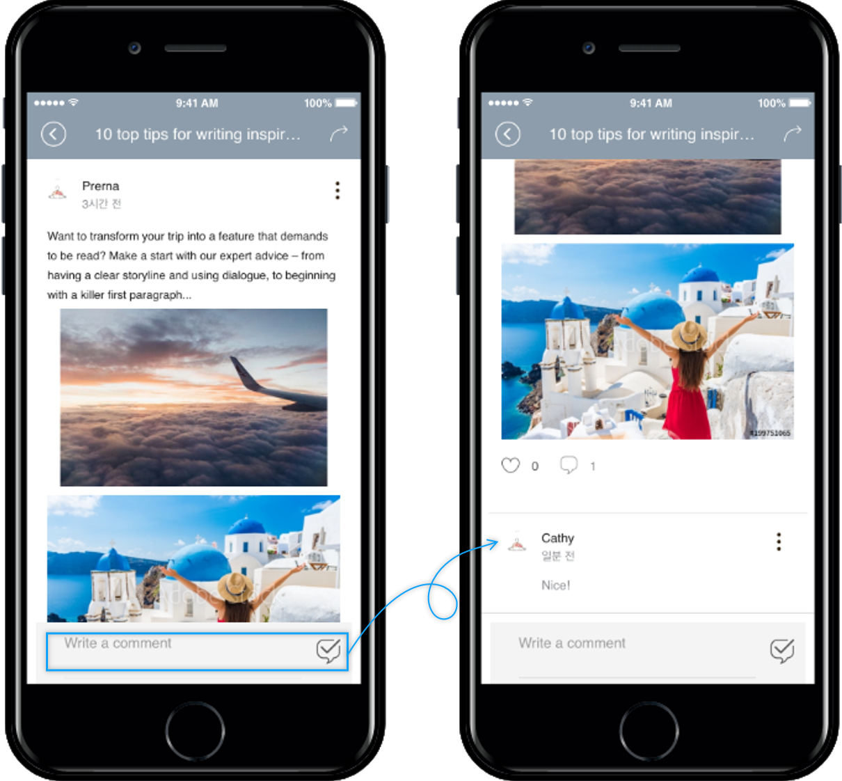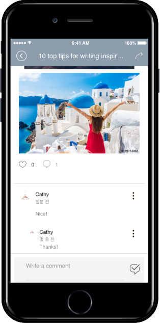 Writing a comment also receives push notifications in real-time to the user who first wrote the comment.