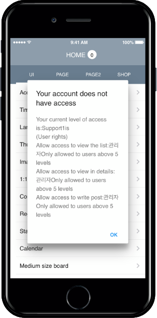 4)Board permission setting items: writing permission, post detail view permission, list view permission setting