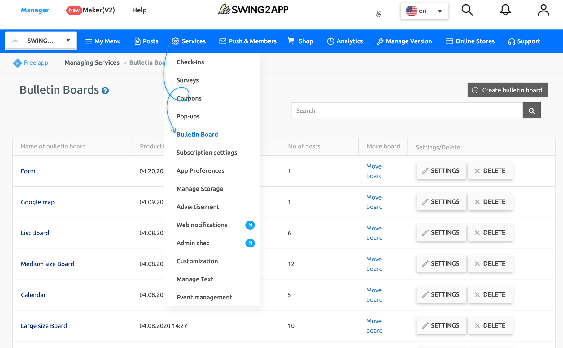 1) If you are new on Swing2App, you do not have to create a bulletin board.