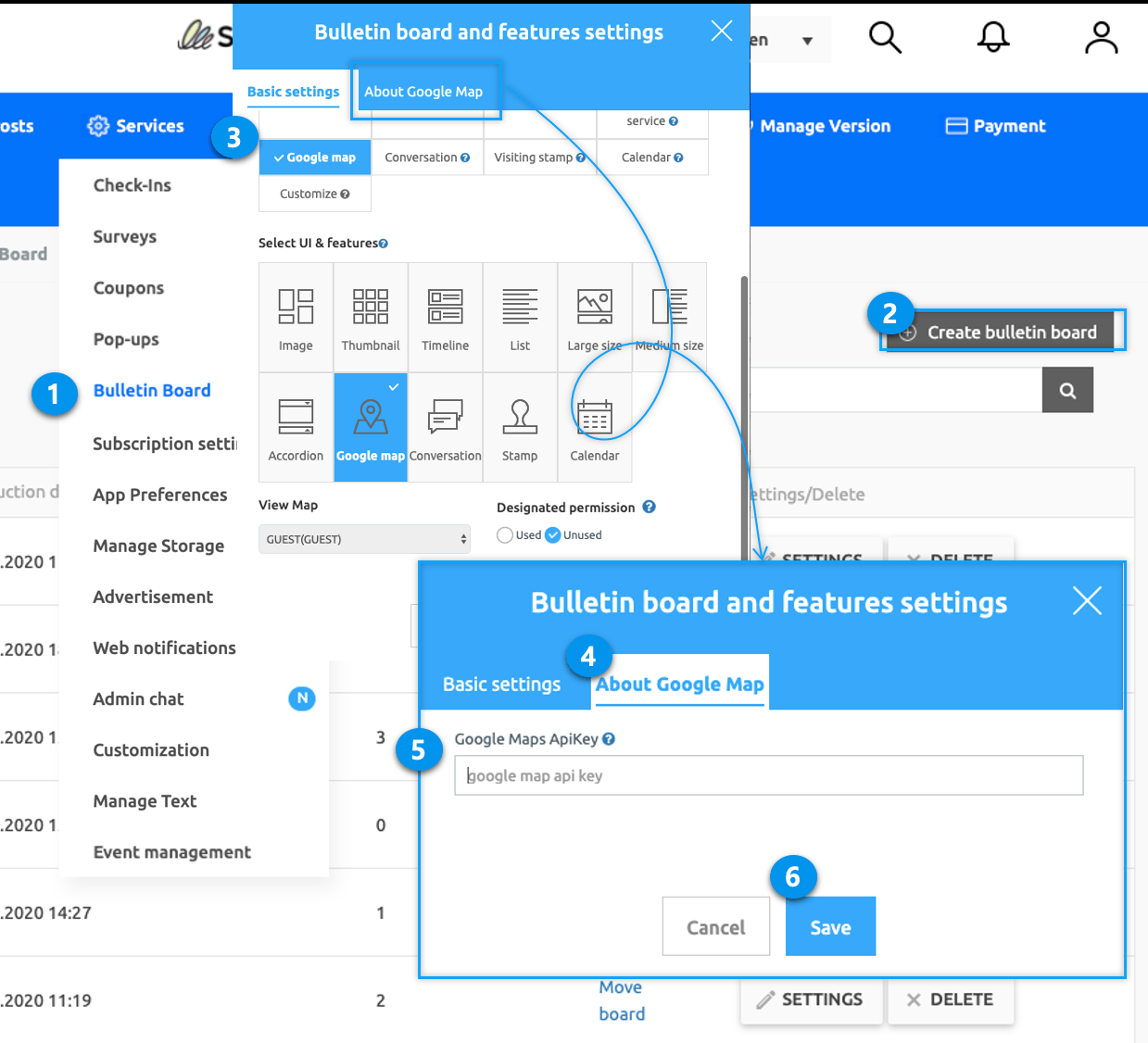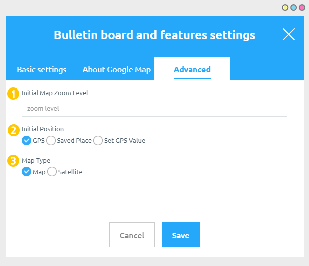 Select Google map in Bulletin Board and Features settings.