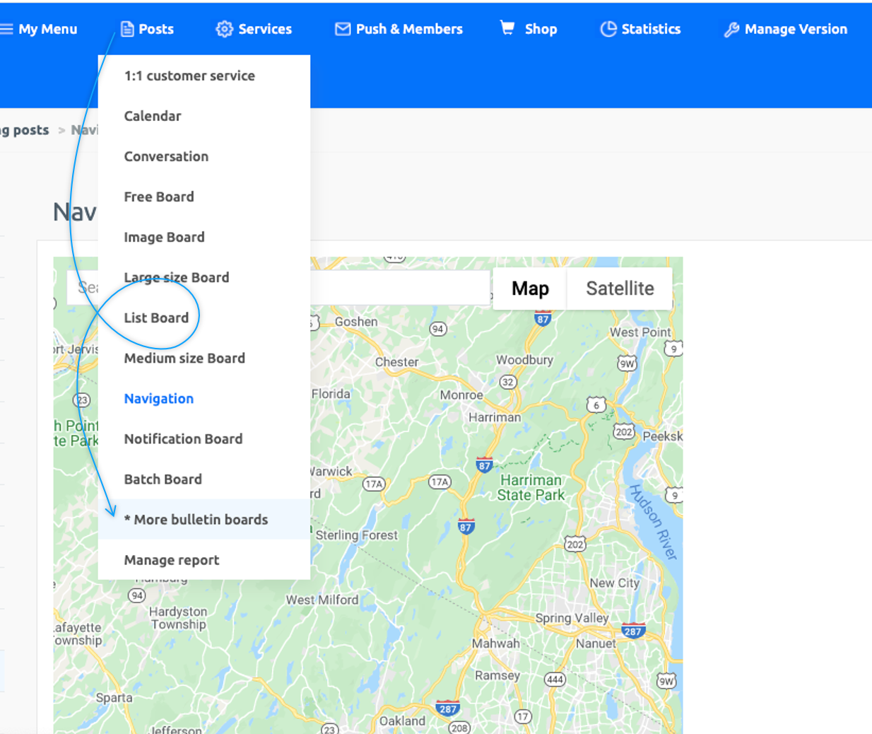 Go to Manager. Select Services. Click on Bulletin Board from the drop-down list.