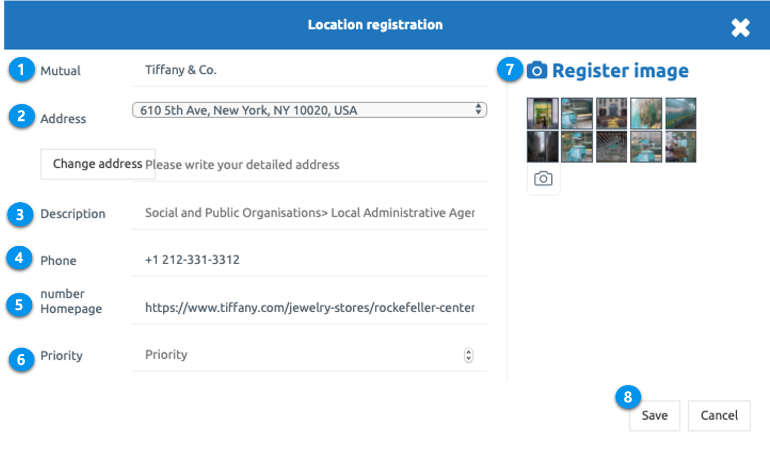 In the Location Registration window, you can enter a detailed description.