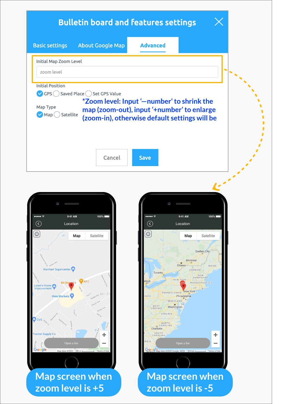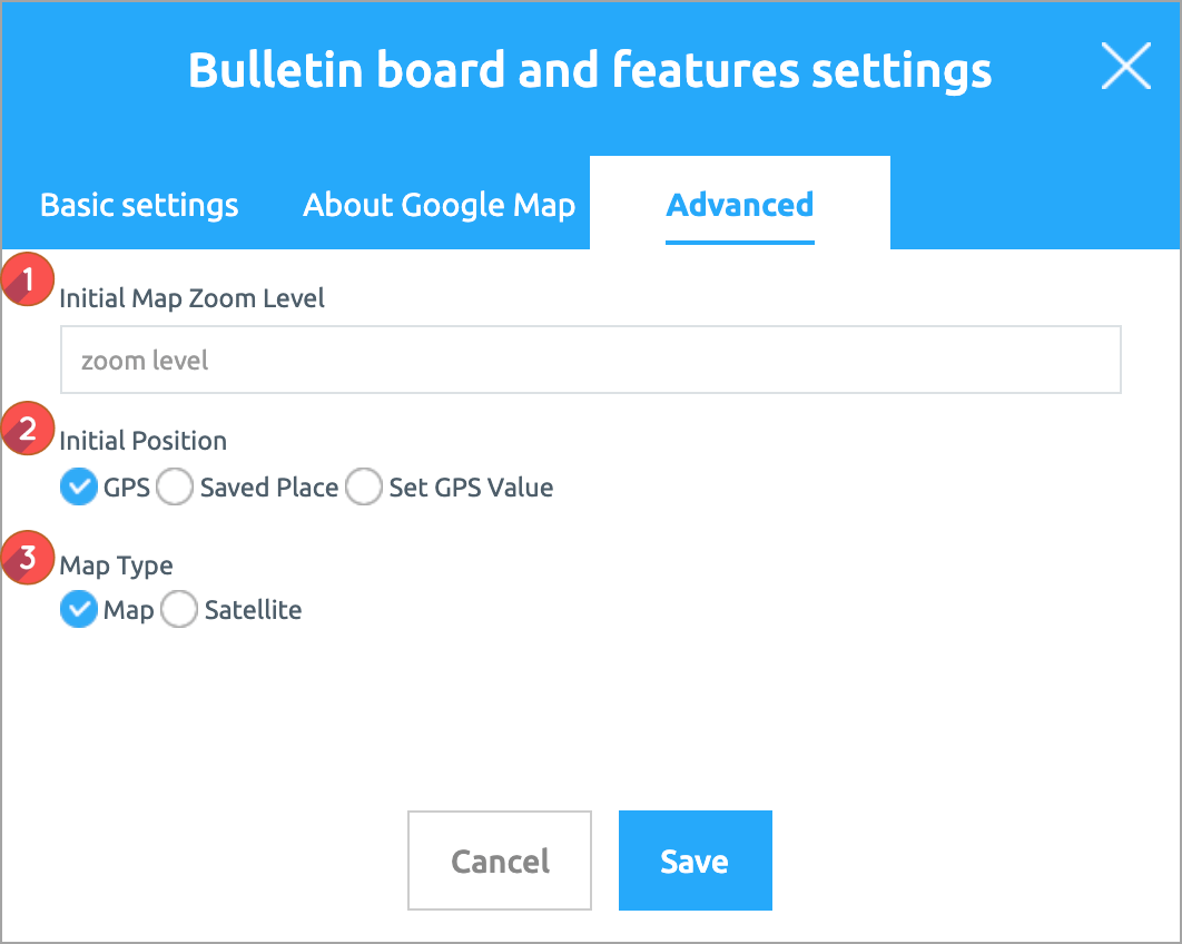 Google Map Bulletin Board Advanced setting
