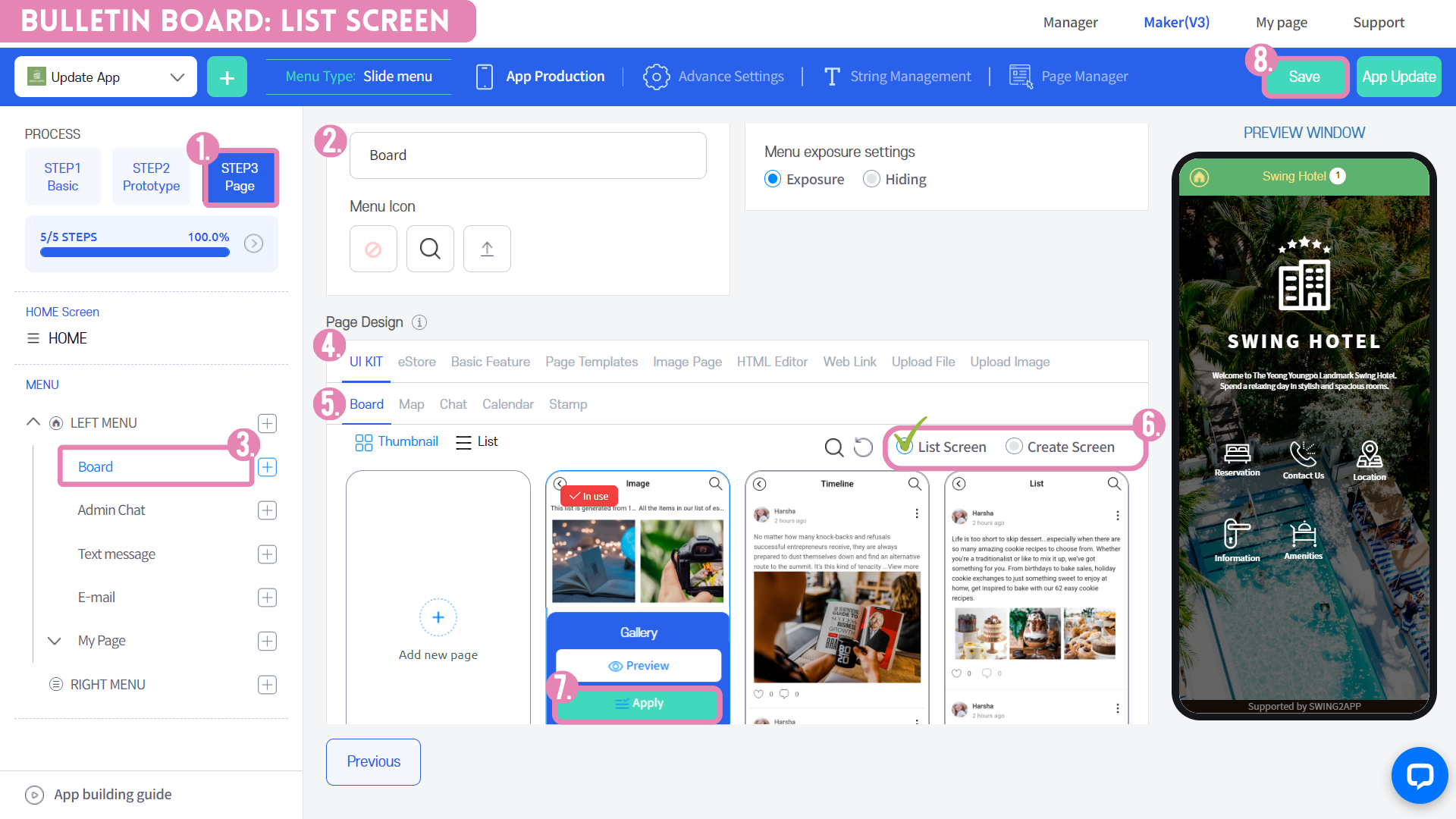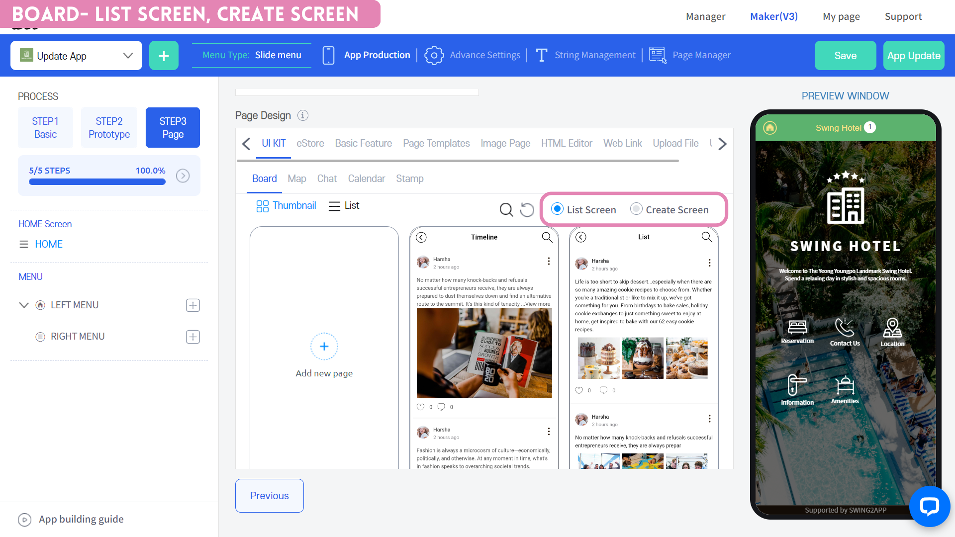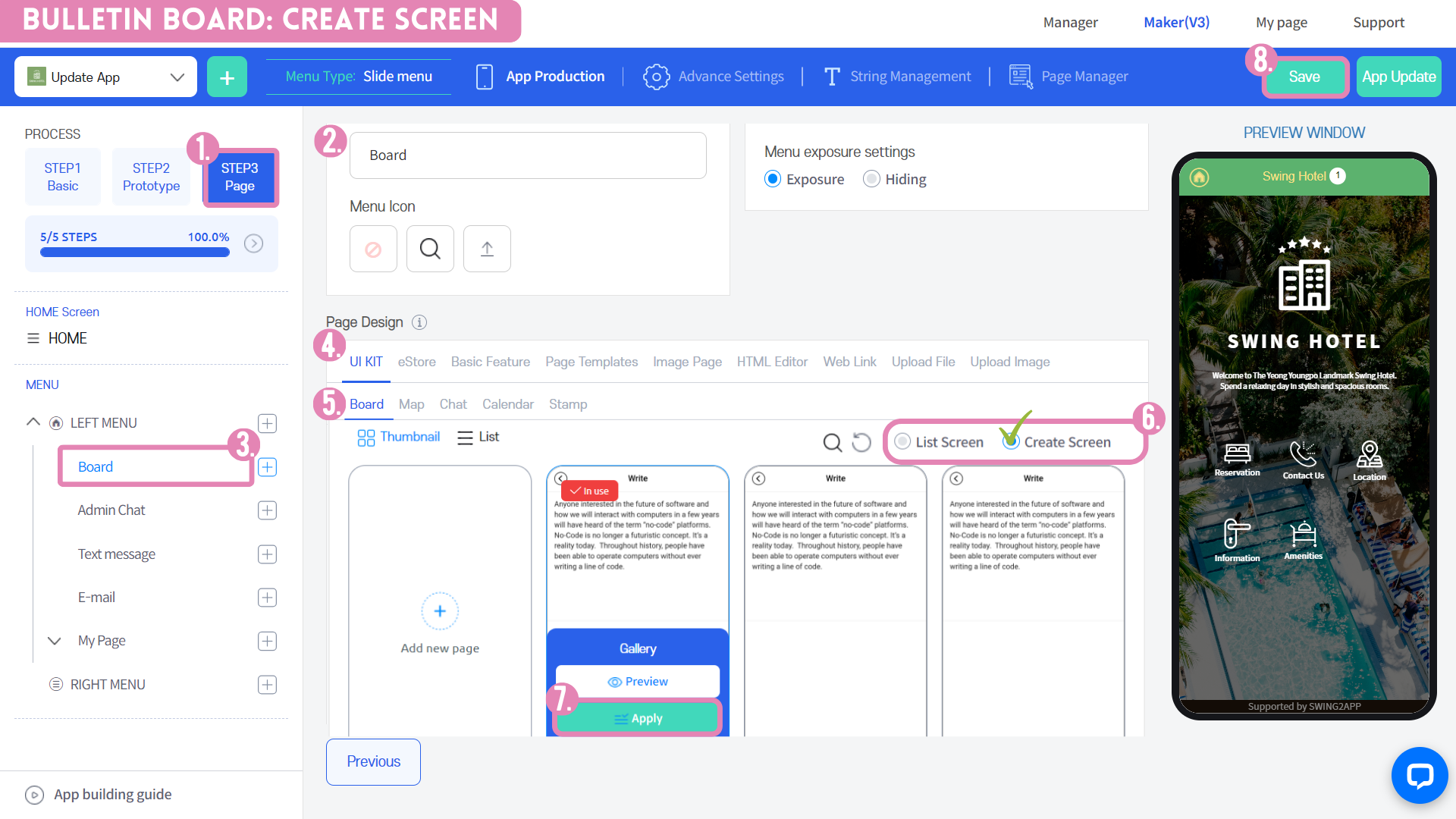 1\)App creation screen - Select STEP3 page