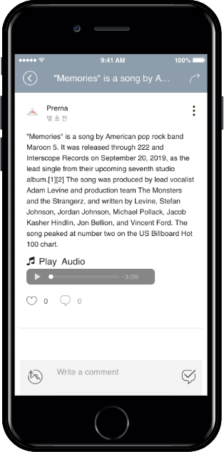 If you go to the post detail view, the playback bar of the attached audio file is created.