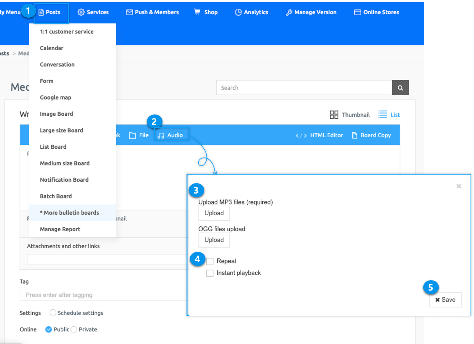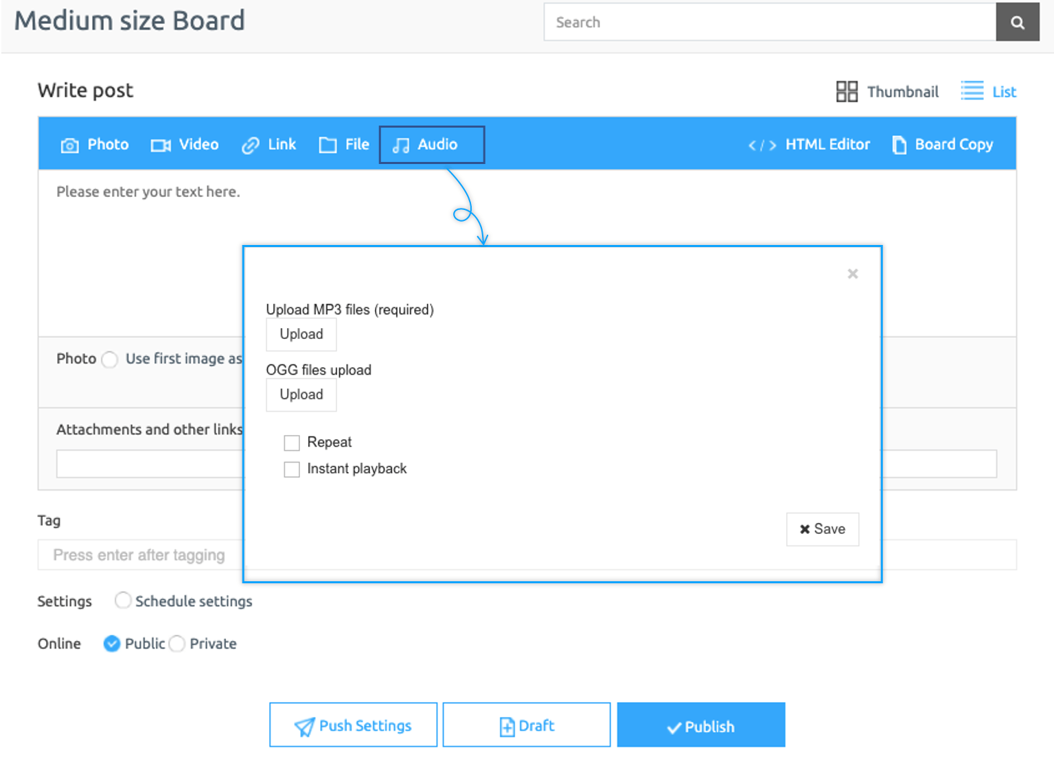 2. Attach audio files to posts