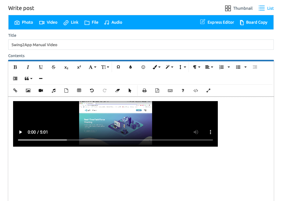 When working with the simple editor, you can simply enter a post and register a video.