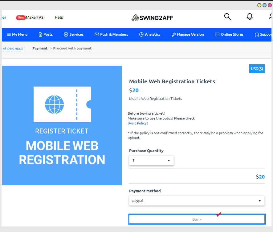 ** To apply for mobile web registration, you need to purchase a swing2app paid ticket.
