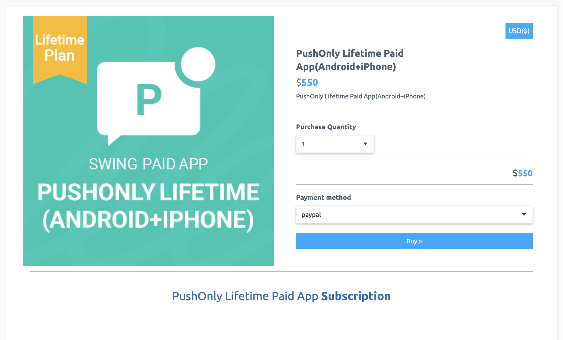 1) After completing the app creation, go to the product purchase page for [Push-only Lifetime Paid App].