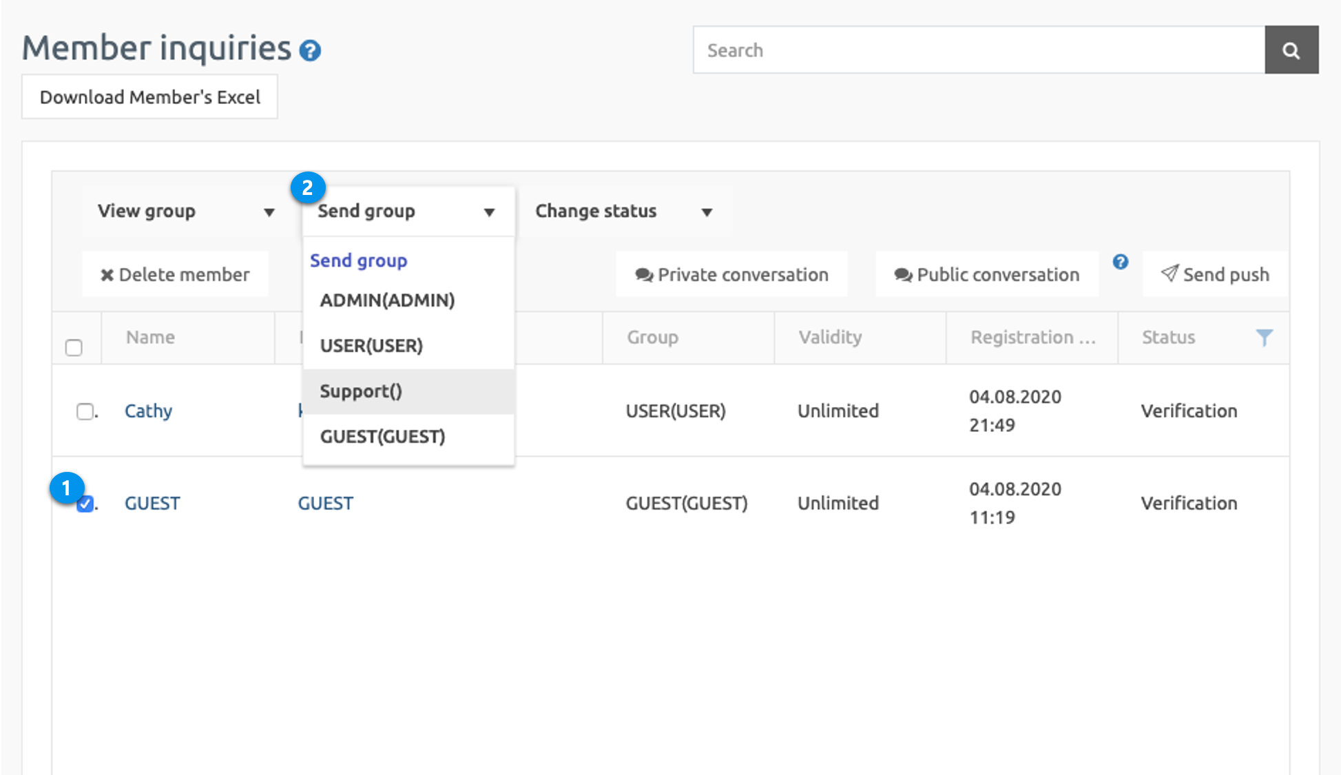 2. Select the member in which you need to move to another group. Select group from Send Group** drop-down** list.