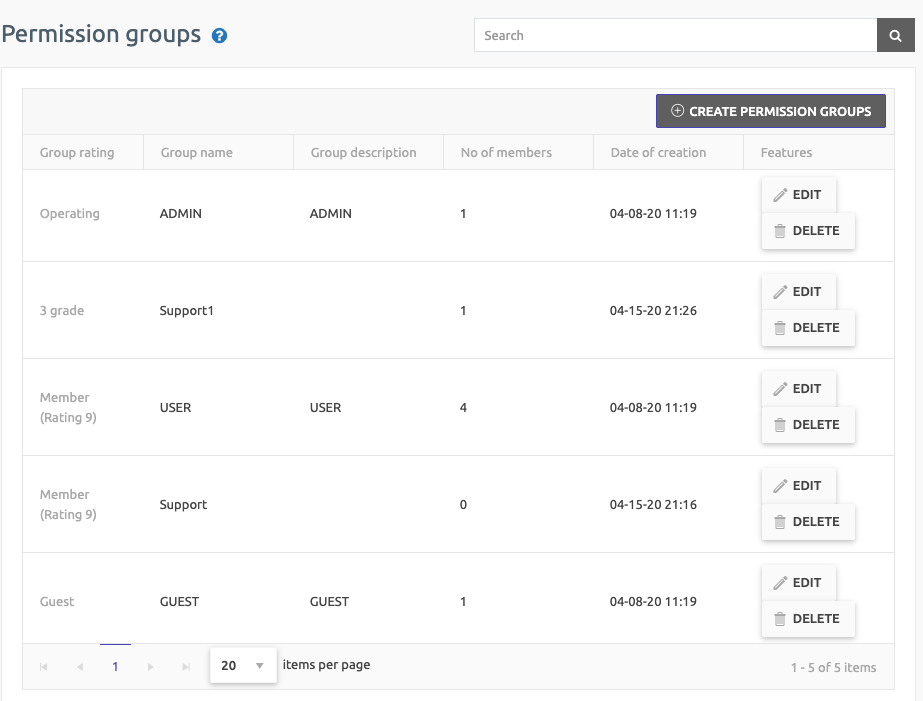 You can see all the list of groups you’ve created on the Permission Group settings page.