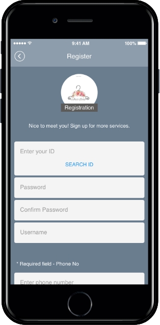 ▶ App launch screen: Sign up form (information entry)