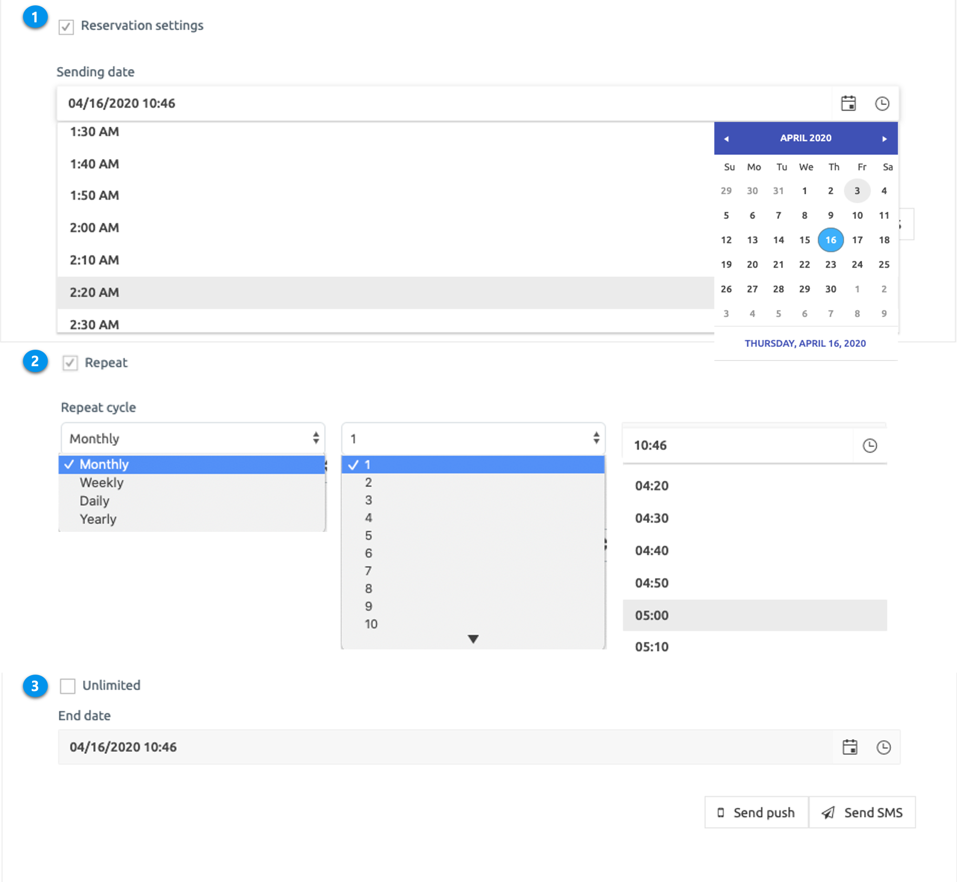 Unlimited: If you want to send unlimited without a push end date, please check ‘unlimited’. If you want to set a limit, please set an end date.