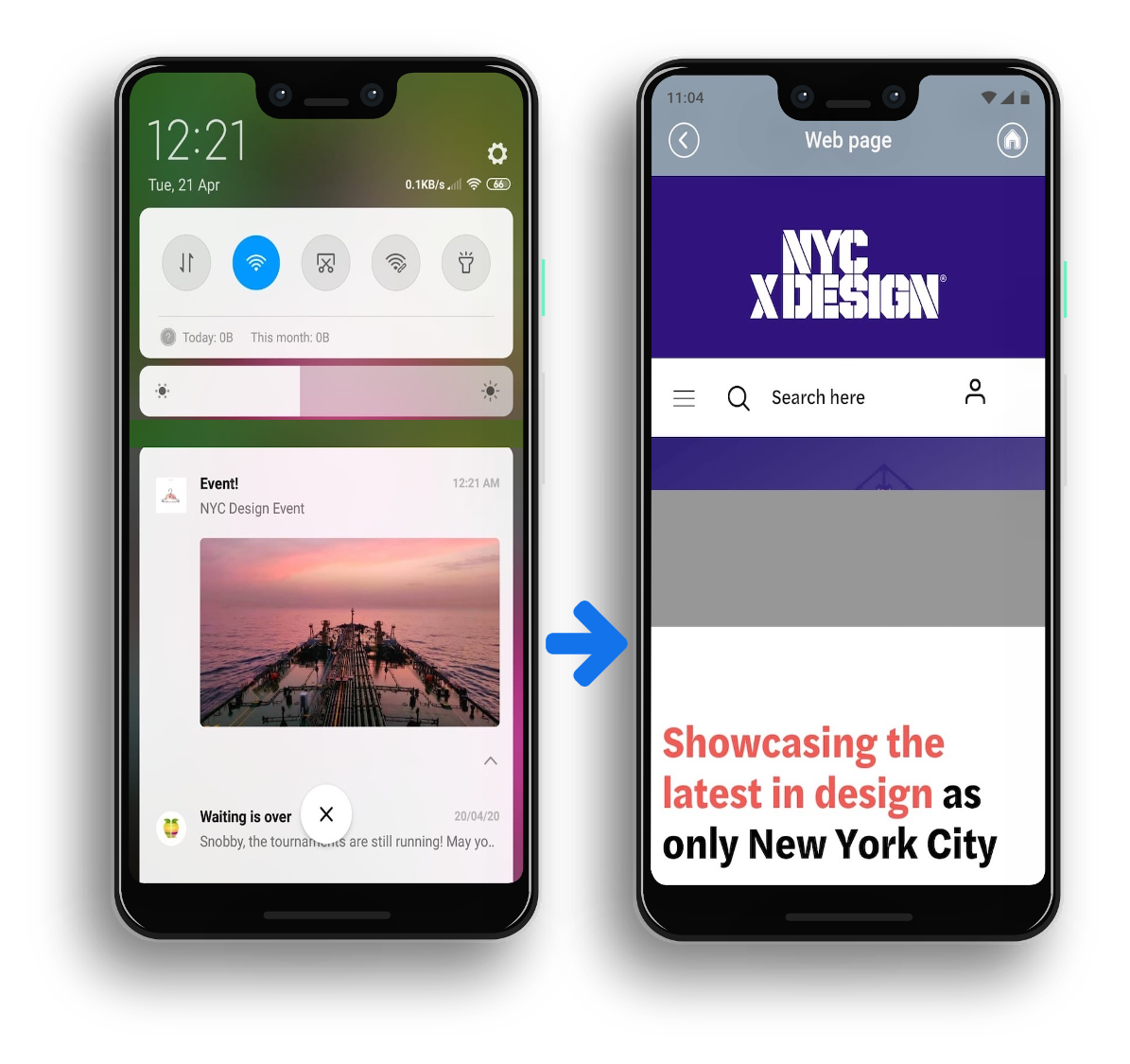 Select the push notification to go to the linked web link page.