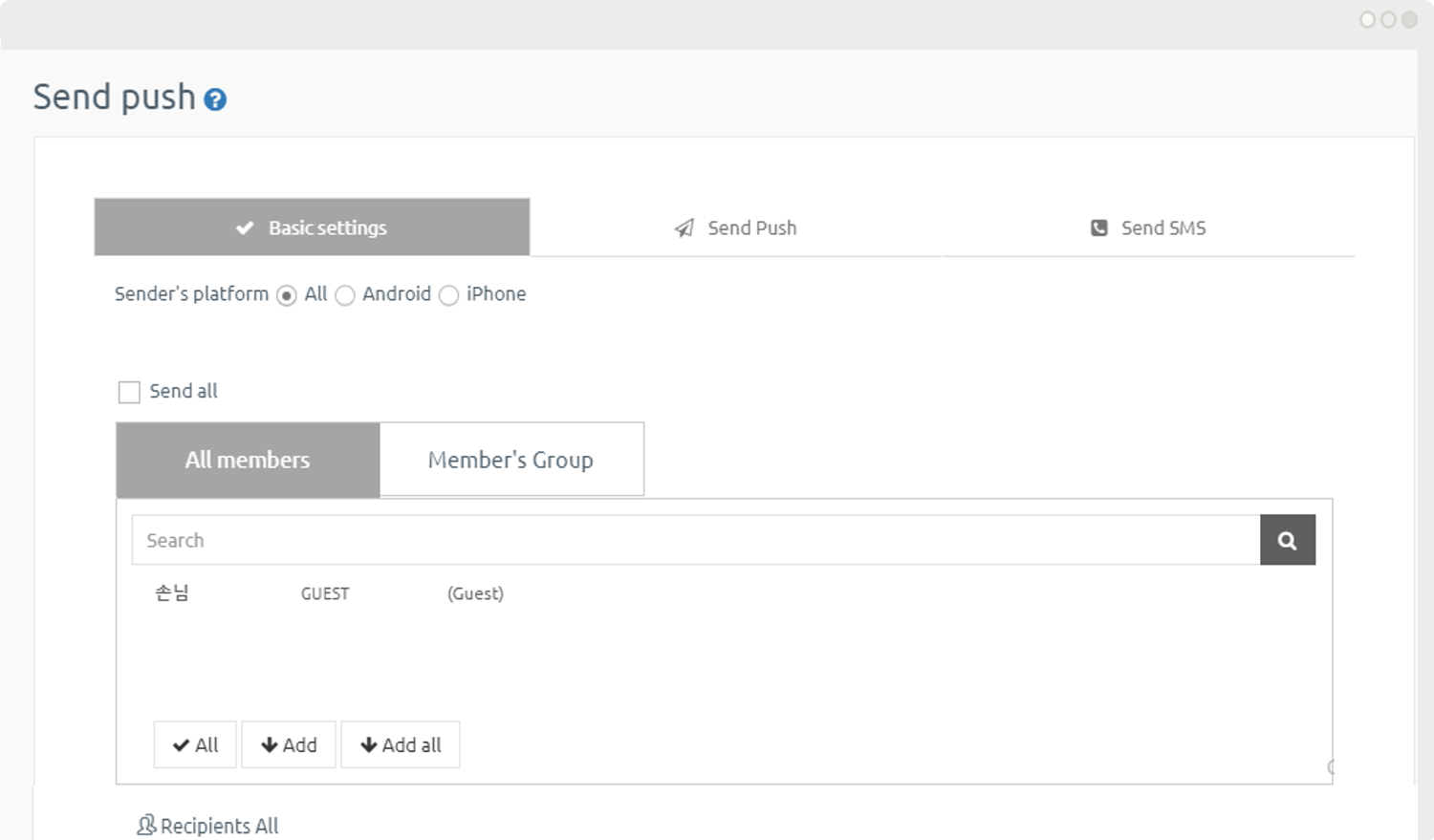 Send a specific member: You can send a push by selecting only certain members.