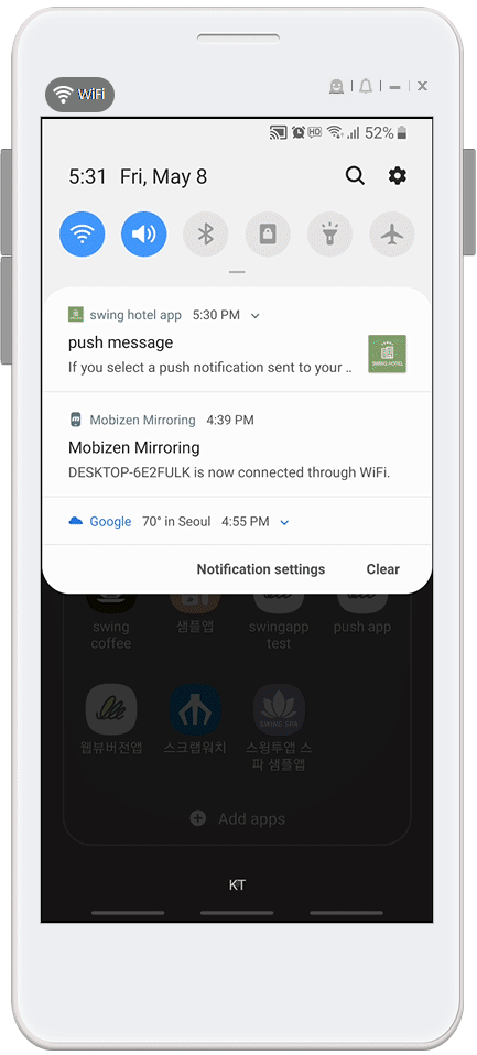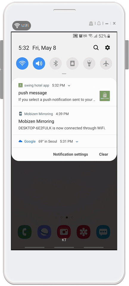 ☞ Go to the link page when you select the push notification sent to your phone. (Does not show push messages separately)