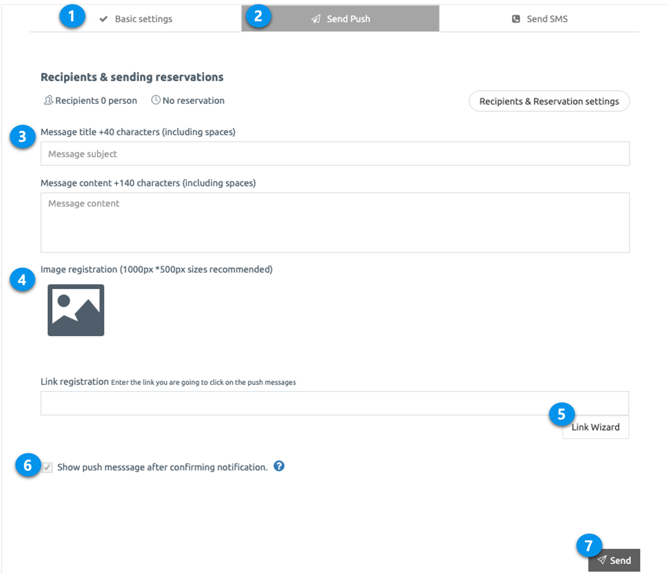 *If you want to send an existing push: Please uncheck if you want to go directly to the link page without displaying a message.