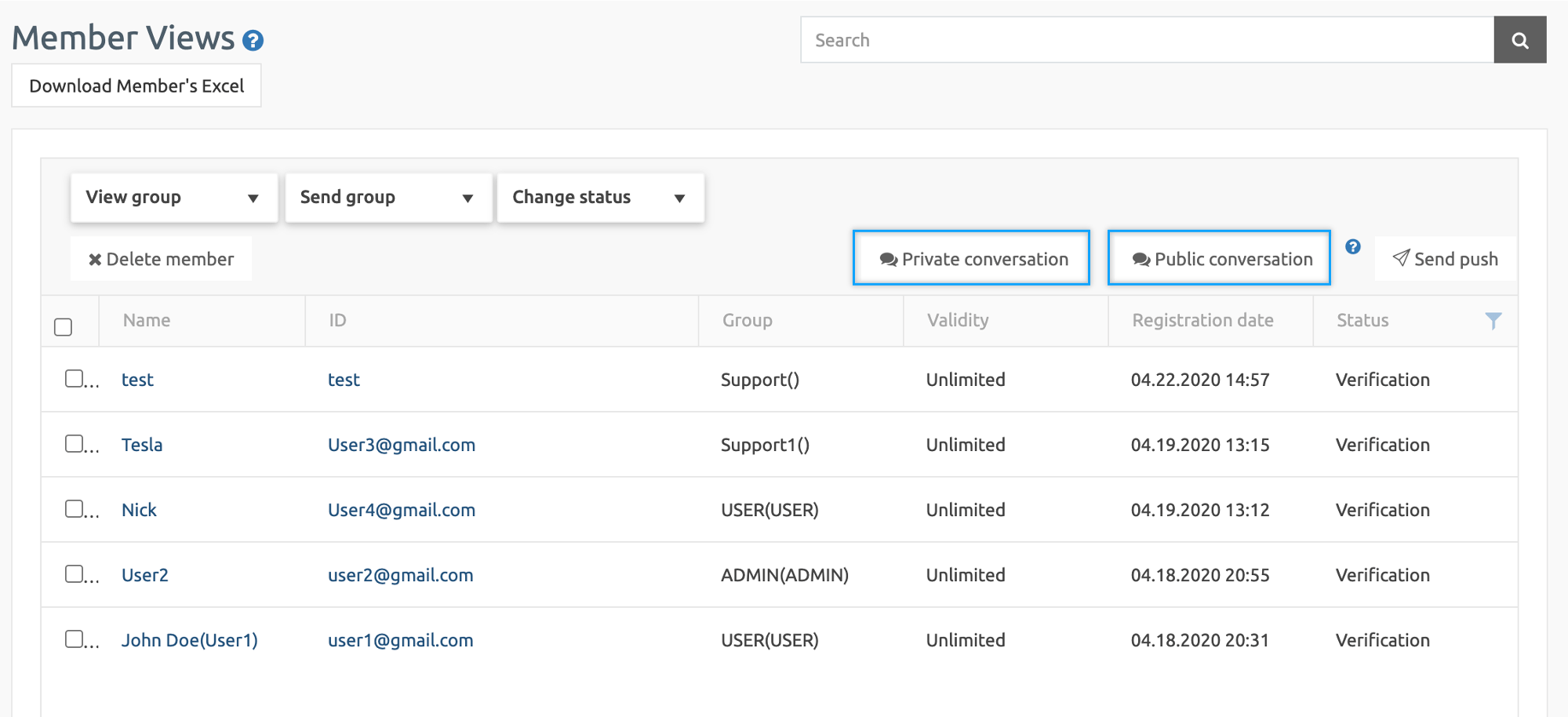 The administrator can chat with members who use the app. Like Kakao Talk or Messenger, you can exchange conversations in real-time, so it can be useful when you need to communicate with specific members.