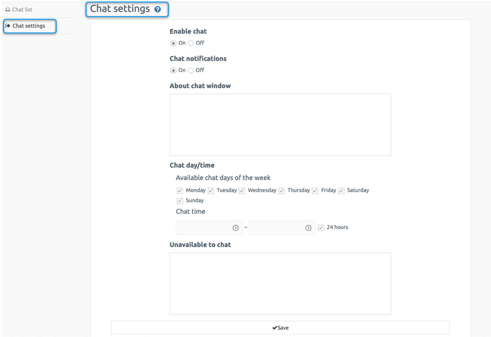 Once the Admin Chat page opens, the user will see 2 options on the left said – Chat List and Chat Settings. Please click on Chat Settings.