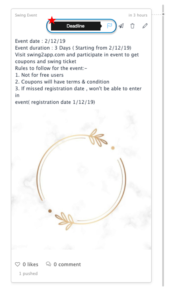 Check-ins event is created when you click on Publish. At this time, unlike other Bulletin Boards, Check-ins have a Deadline function. When the event period is completed, you can end the event by closing the check-ins post. Therefore, after the event, when the event duration is completed and you wish to close it, then click the Deadline icon(Flag). Once you click on it, then a pop-up will open asking ‘Do you want to close it?’, click OK to close the article.