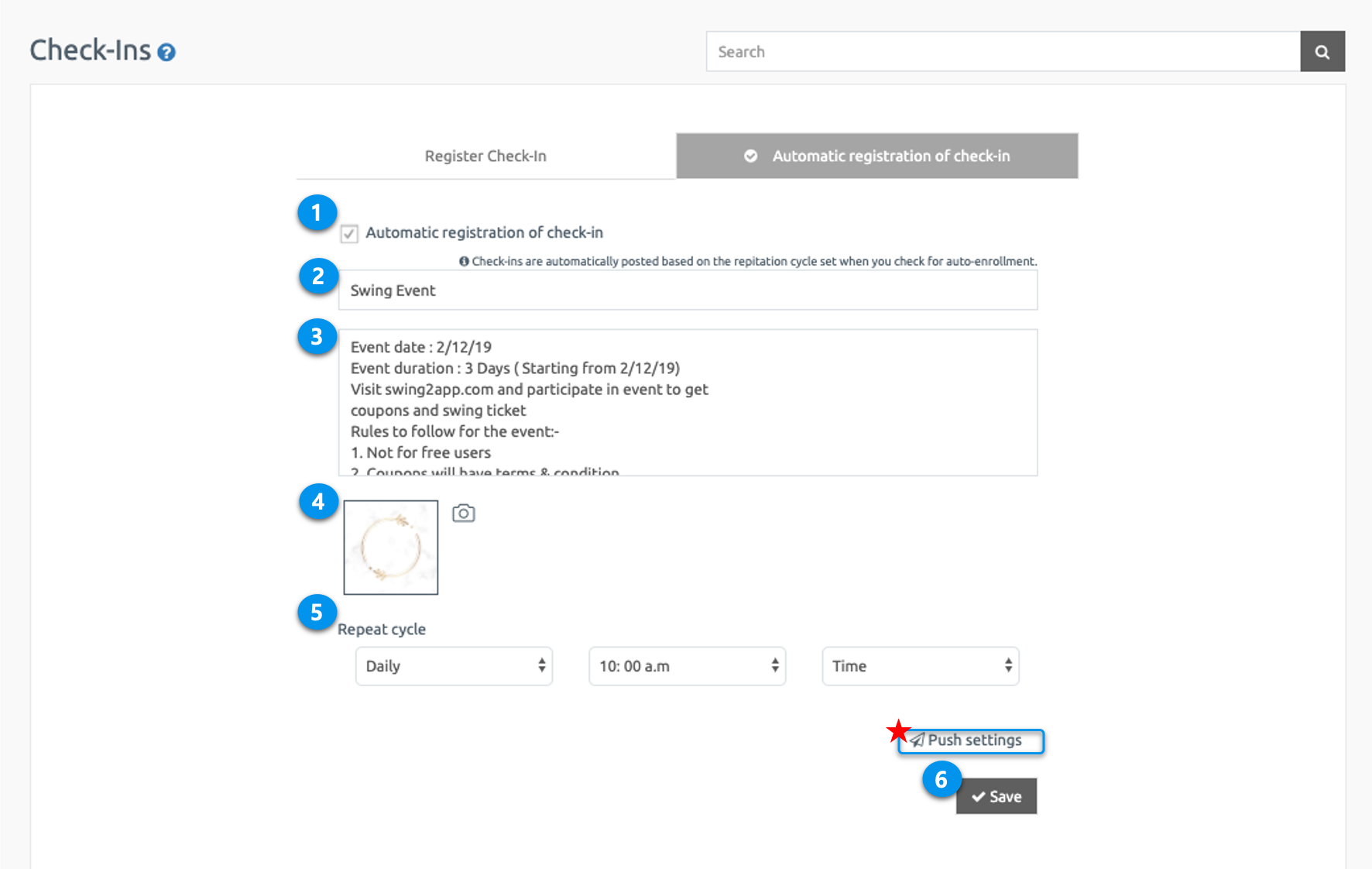 Check-ins can automatically publish the event posts according to the recurring cycle set by the user.