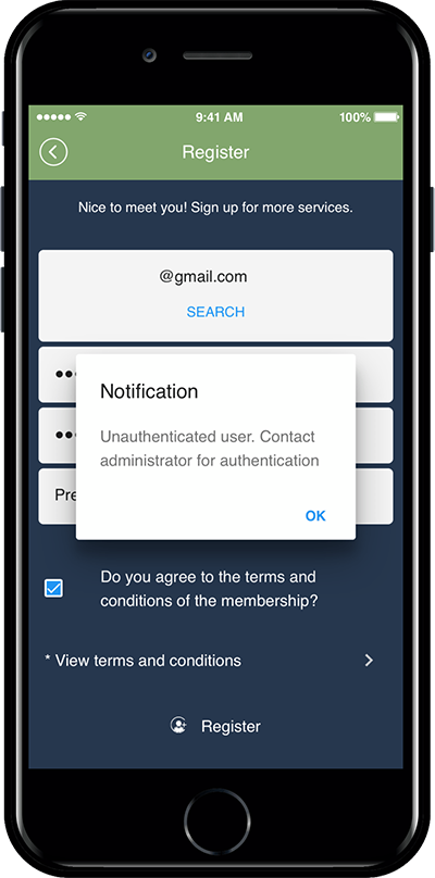 This is the page that sets up the sign-up form. The username form provided by the app is a generic ID, phone number, and email. The operator selects which ID to receive membership and saves.