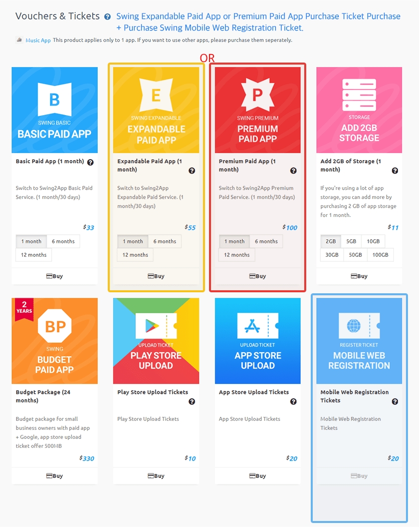 *Mobile web applications are only applicable for extended and premium use. (Basic vouchers and affordable package products do not apply.)