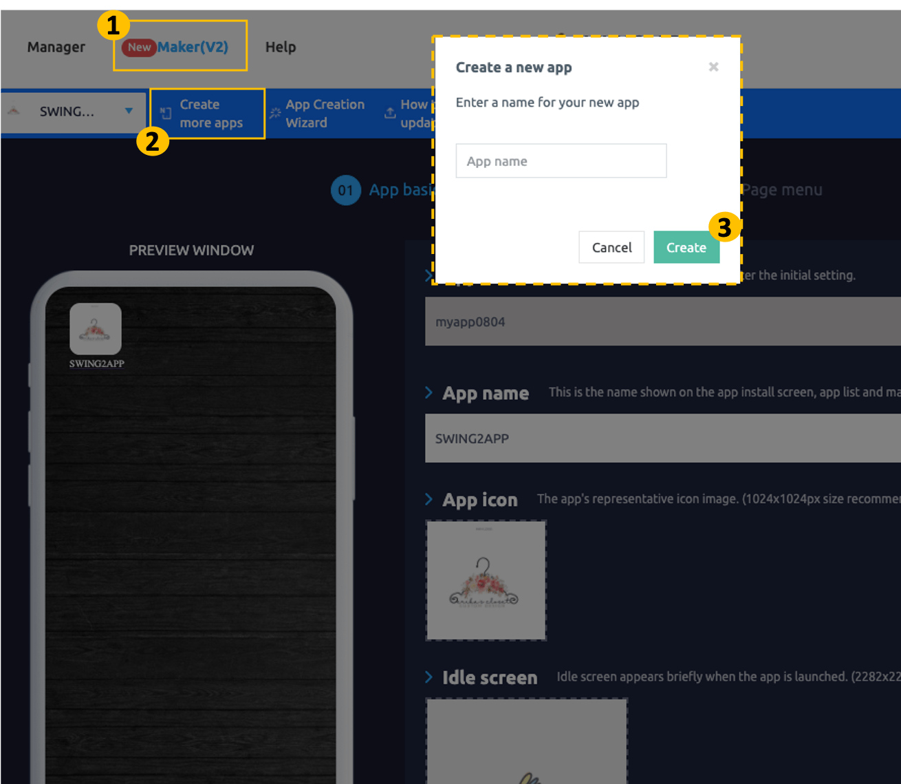 Basic Information – How to create an app Swing2App can create and manage multiple apps in 1 account.